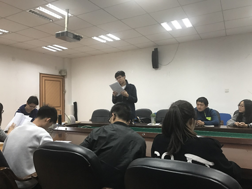 本次党支部会议的第一个环节是由许晨航、戴慧纯同志宣读自己的入党志愿书内容,包括自己的基本信息和入党志愿、家庭情况等;接下来分别由他们两位同志的入党介绍人分别发表了自己的对将要发展的两名入党积极分子得看法和态度;接下来是投票环节,由到场的四位正式党员进行无记名投票。