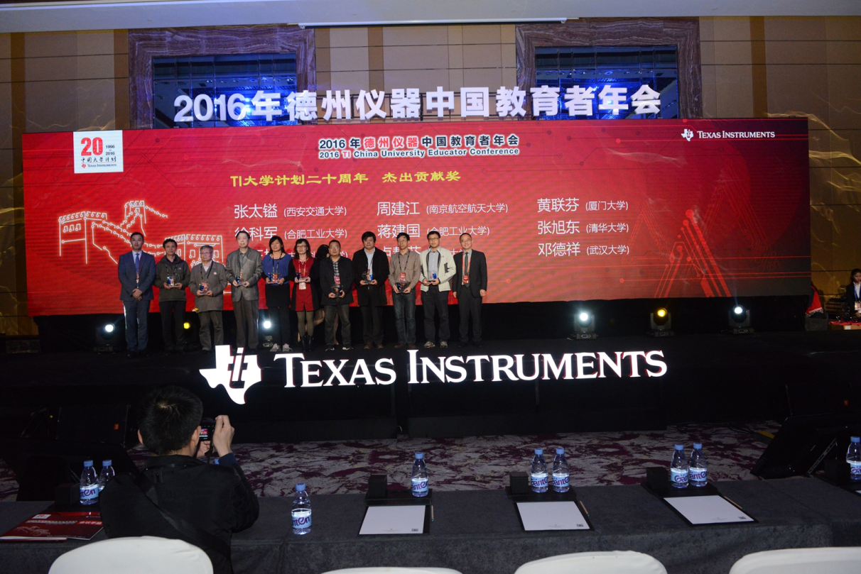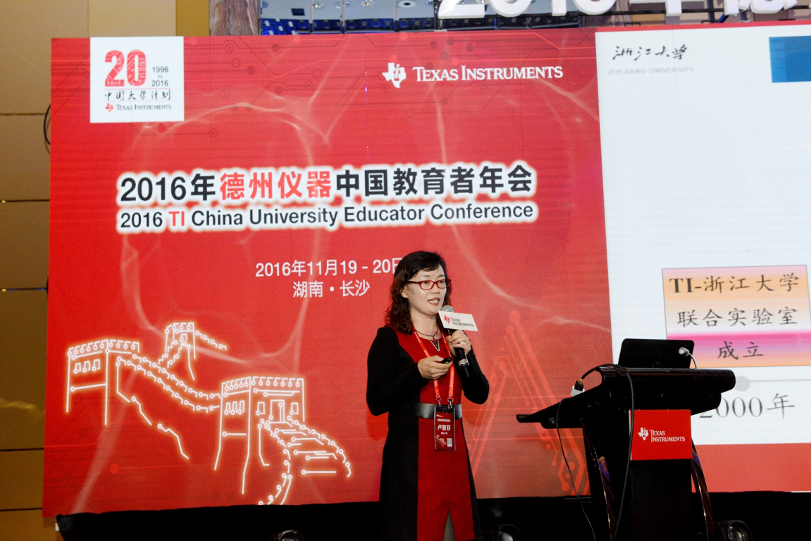 11月19日至20日,2016年德州仪器(TI)中国教育者年会暨大学计划20周年纪念大会在长沙召开。来自全国100多所高校的约300位老师参加了本次年会。TI亚太区市场传播总监乐大桥先生、TI亚太区大学计划总监王承宁博士以及来自清华大学、浙江大学、上海交通大学、东南大学、西安电子科技大学、天津大学、南京大学等国内高校的教学名师、大学联合实验室主任、教学和实践一线教师、各级电赛核心专家和美国加州大学圣迭戈分校的教授代表在本次年会中共同回顾了TI大学计划20年来的发展历史,并就如何开展高校教学改革和创新人才培养进行了探讨与交流。会议现场气氛活跃,与会专家围绕实验教学问题进行了广泛交流。浙江大学电气学院的探究型系列实验教学改革一直处于国内排头兵行列,我院卢慧芬老师作为TI受邀核心教授,代表电气学院就探究性实验教学改革进行了专题演讲,并获得了TI公司的“大学计划20年杰出贡献奖”,电气学院TI联合实验室也被评为“TI大学计划优秀联合实验室”。