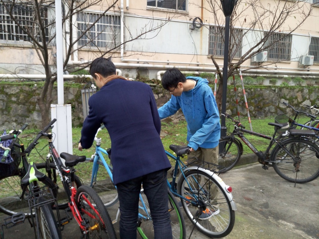 实践是检验真理的唯一标准,通过理论知识的学习,同学们在校园内积极进行了实践活动。在毛毛细雨中,对玉泉乱停乱放的自行车进行整理,感受到了工作人员的辛苦,达到了养成自觉摆放好实践的好习惯。