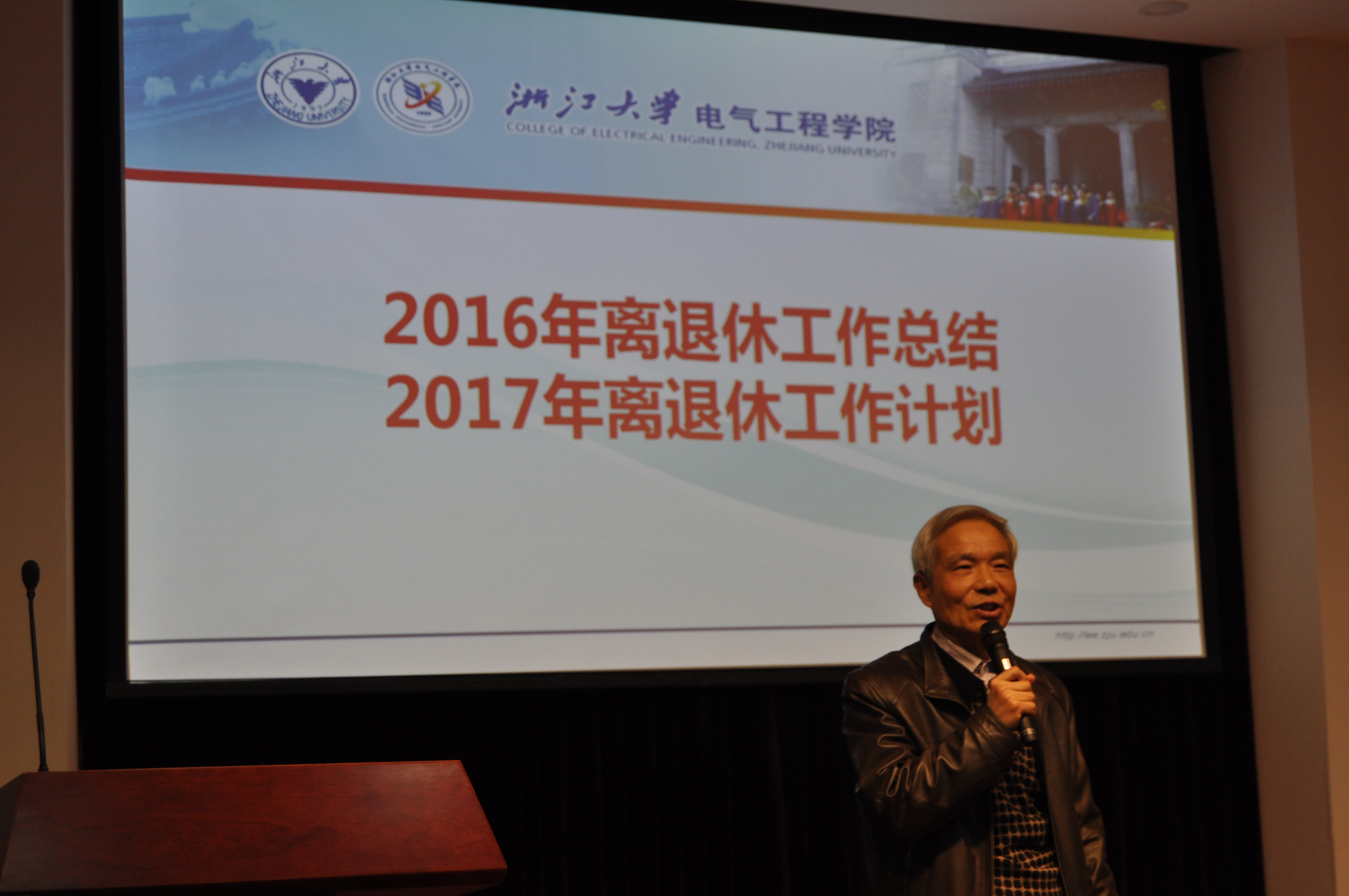 2016年12月6日,浙江大学电气工程学院在玉泉校区邵逸夫科学馆举行2016年离退休工作研讨会暨八十华诞教工集体贺寿庆典活动。中国工程院院士汪槱生、学院党委副书记陈敏、退休党总支书记吴长春、各教工党支部书记以及学院离退休教职工140余人参会,活动由学院综合服务办主任杨敏虹与退休第一党支部书记吴国忠共同主持。