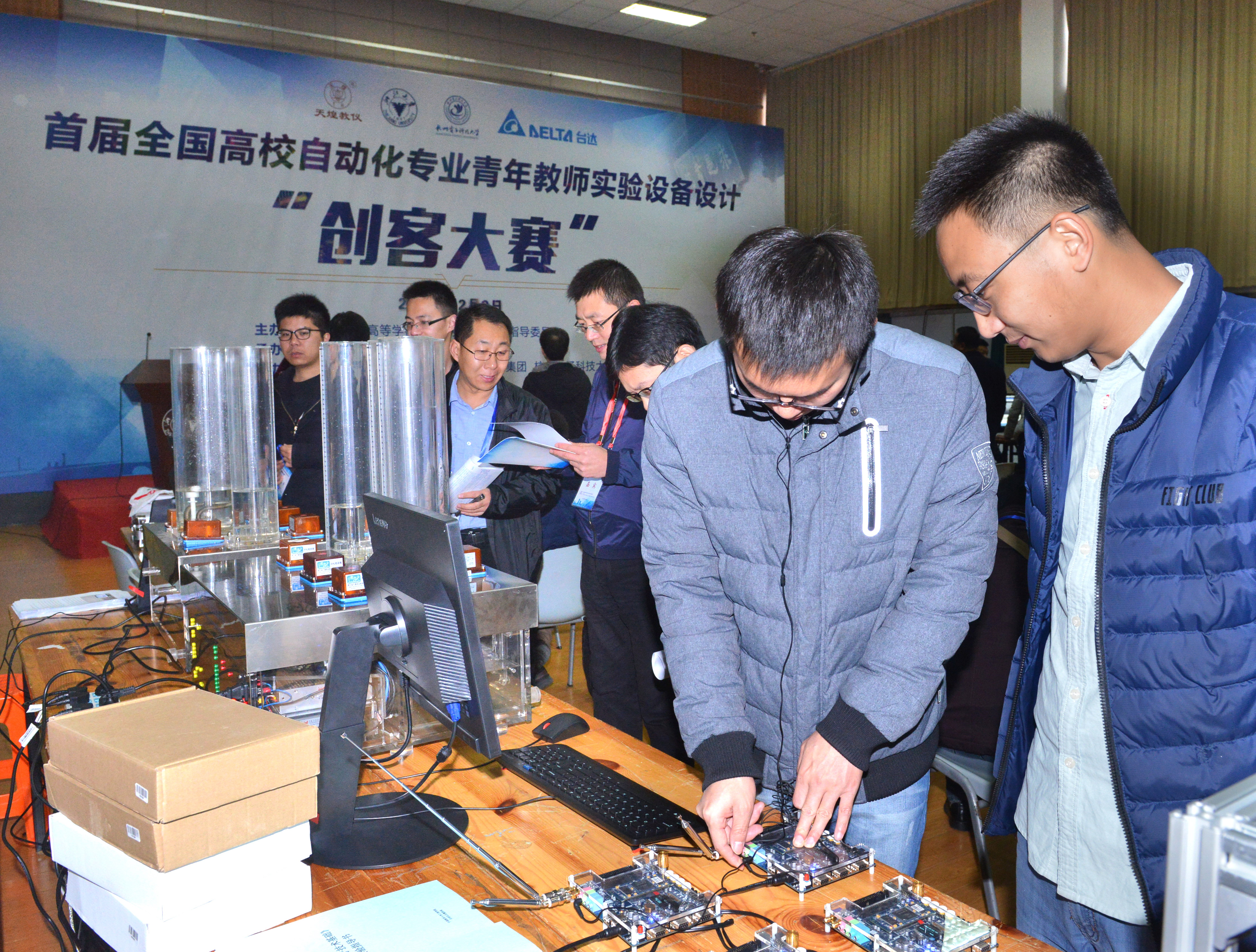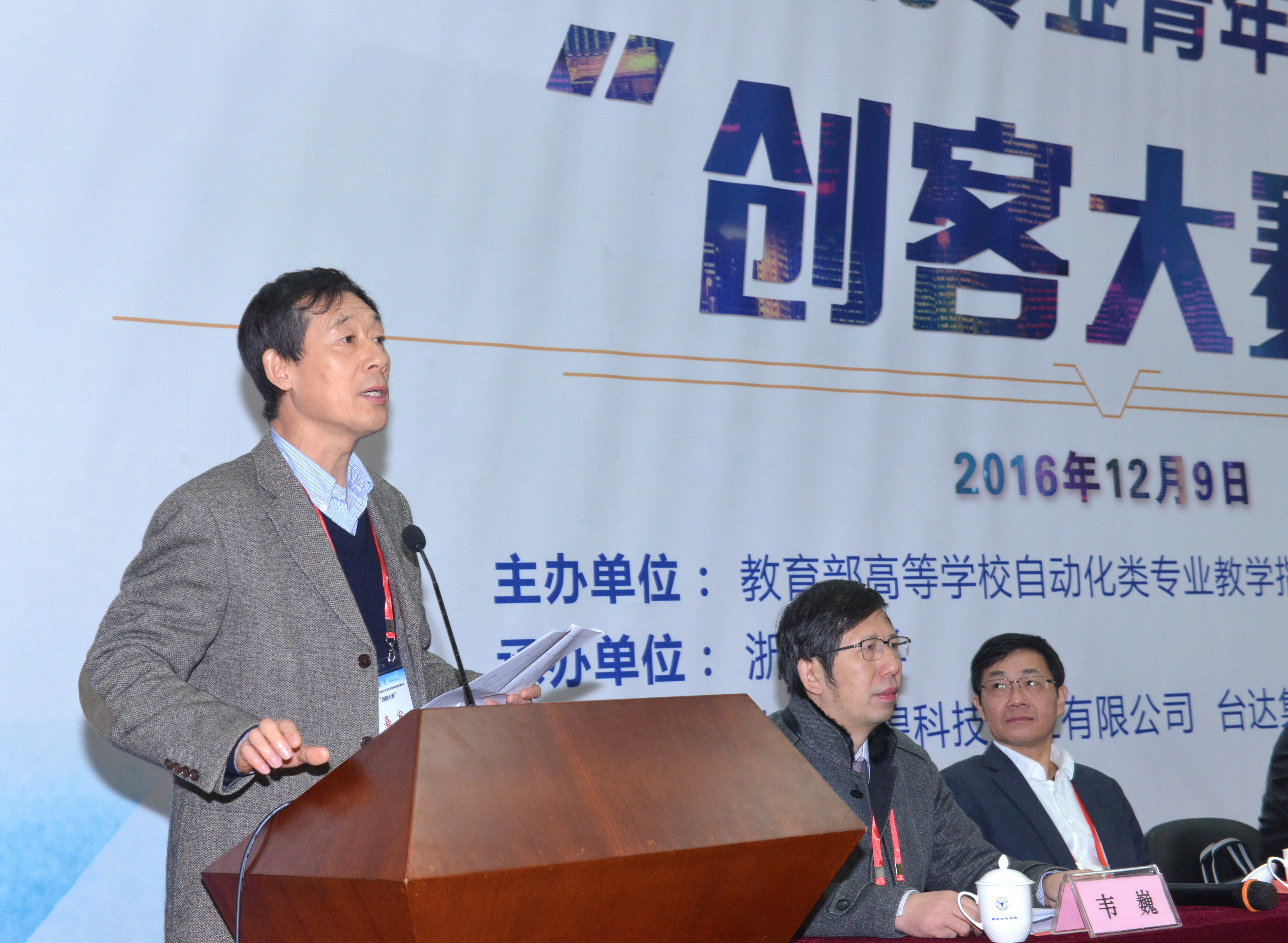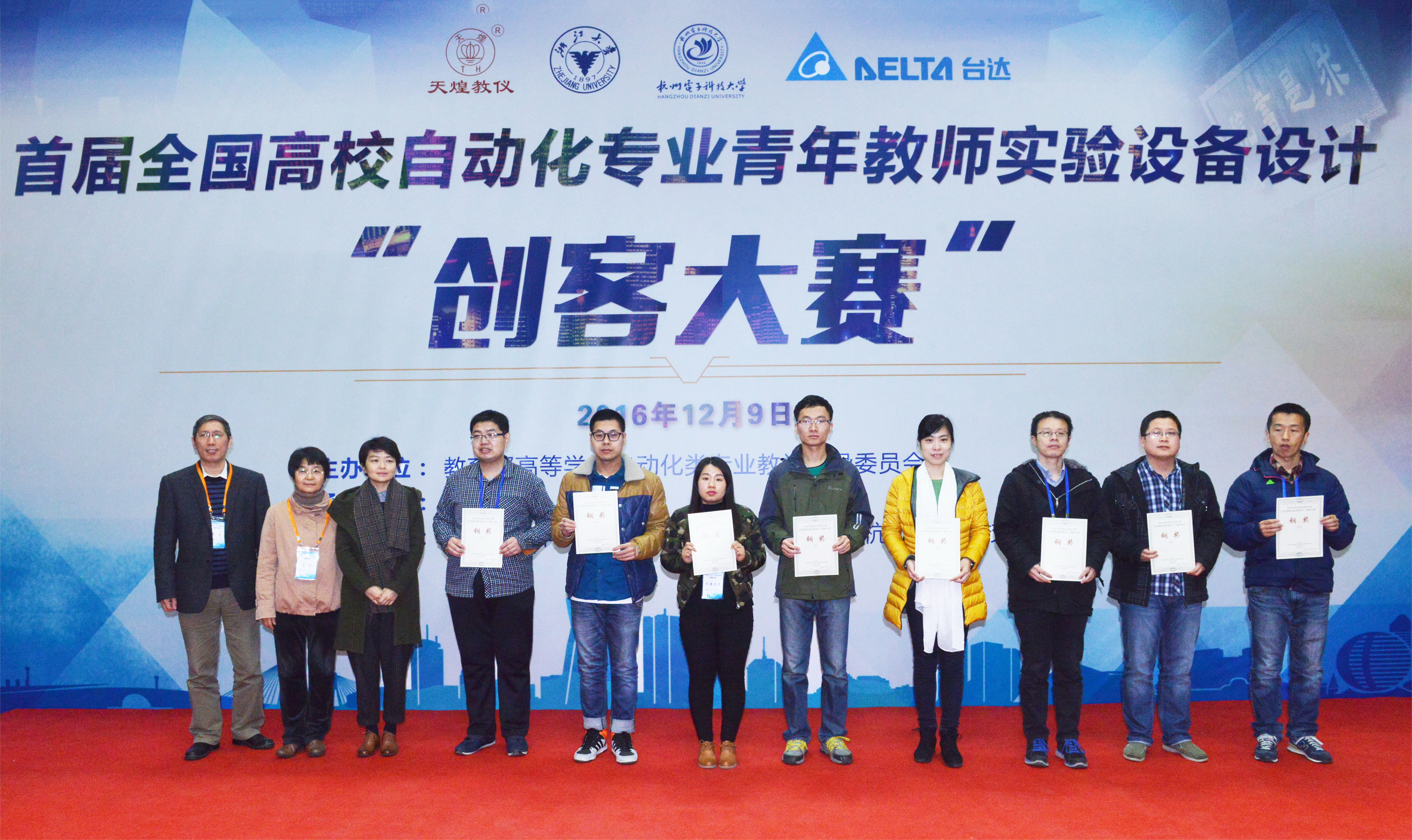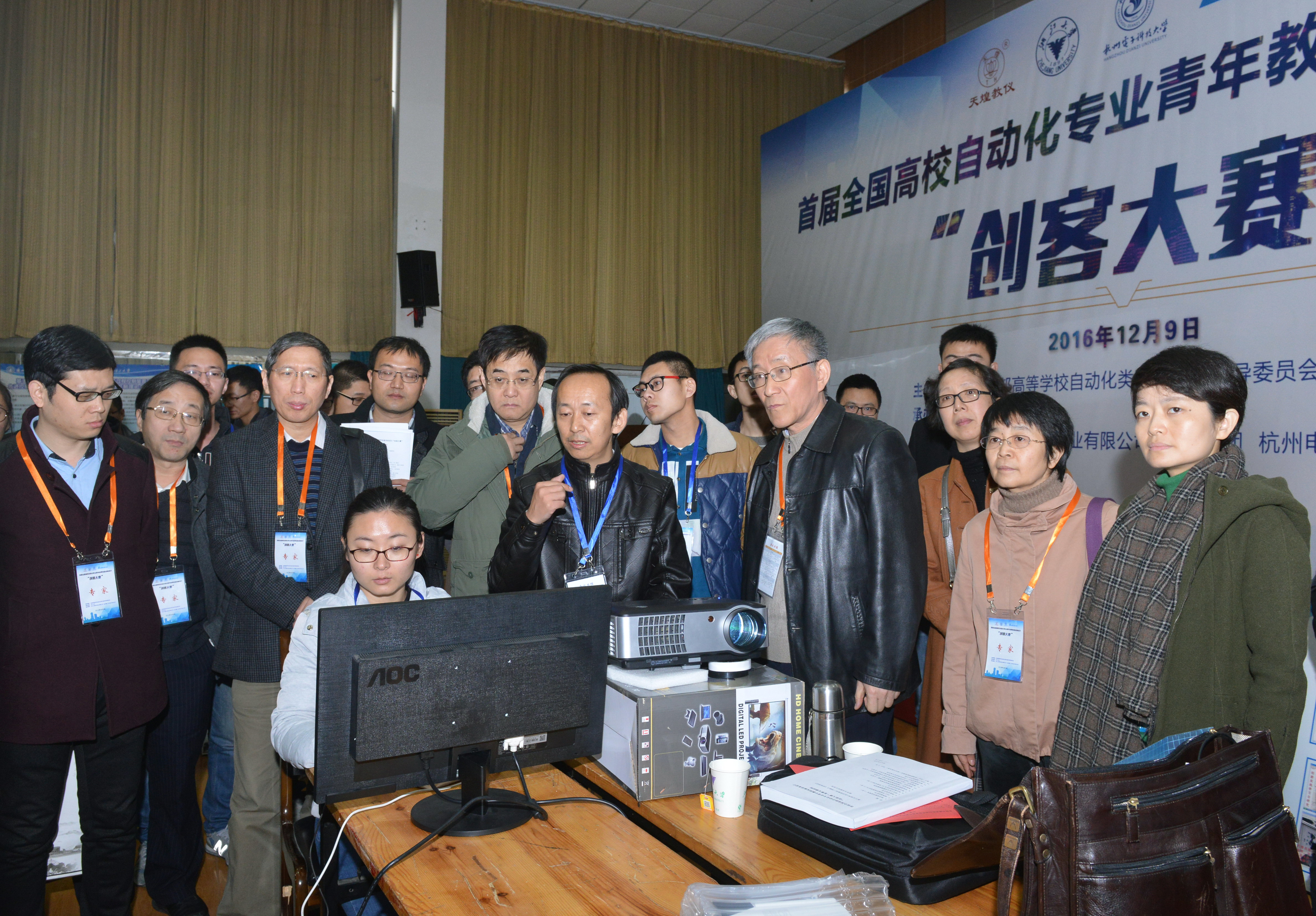 2016年12月10日至11日,首届全国高校自动化专业青年教师实验设备设计“创客大赛”在浙江大学举行。浙江大学党委副书记朱世强,杭州电子科技大学校长薛安克,教育部高校自动化类专业教指委副主任委员刘丁、戴先中,委员齐晓慧、俞立、王红等,中国自动化学会教育工委副主任委员孙跃,浙江大学刘向东、张光新、马皓,杭州电子科技大学彭冬亮以及大赛赞助单位浙江天煌科技实业有限公司黄华圣、台达集团王乃全等参加了开幕式。开幕式由浙江大学电气工程学院院长韦巍主持。