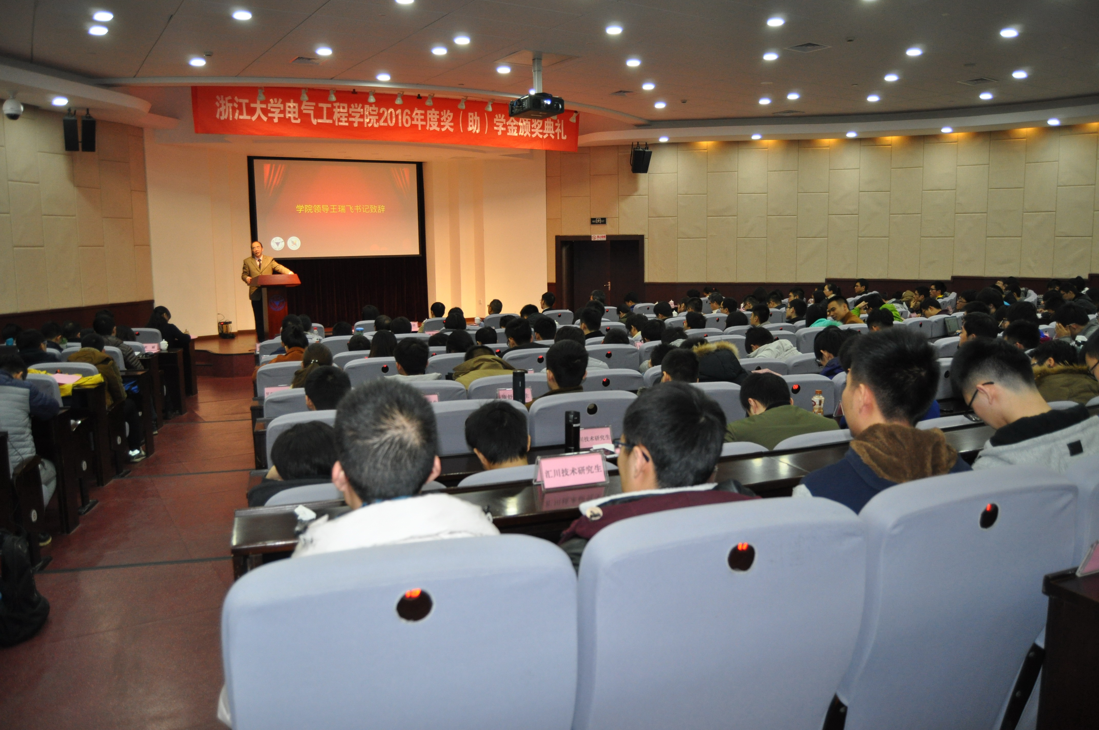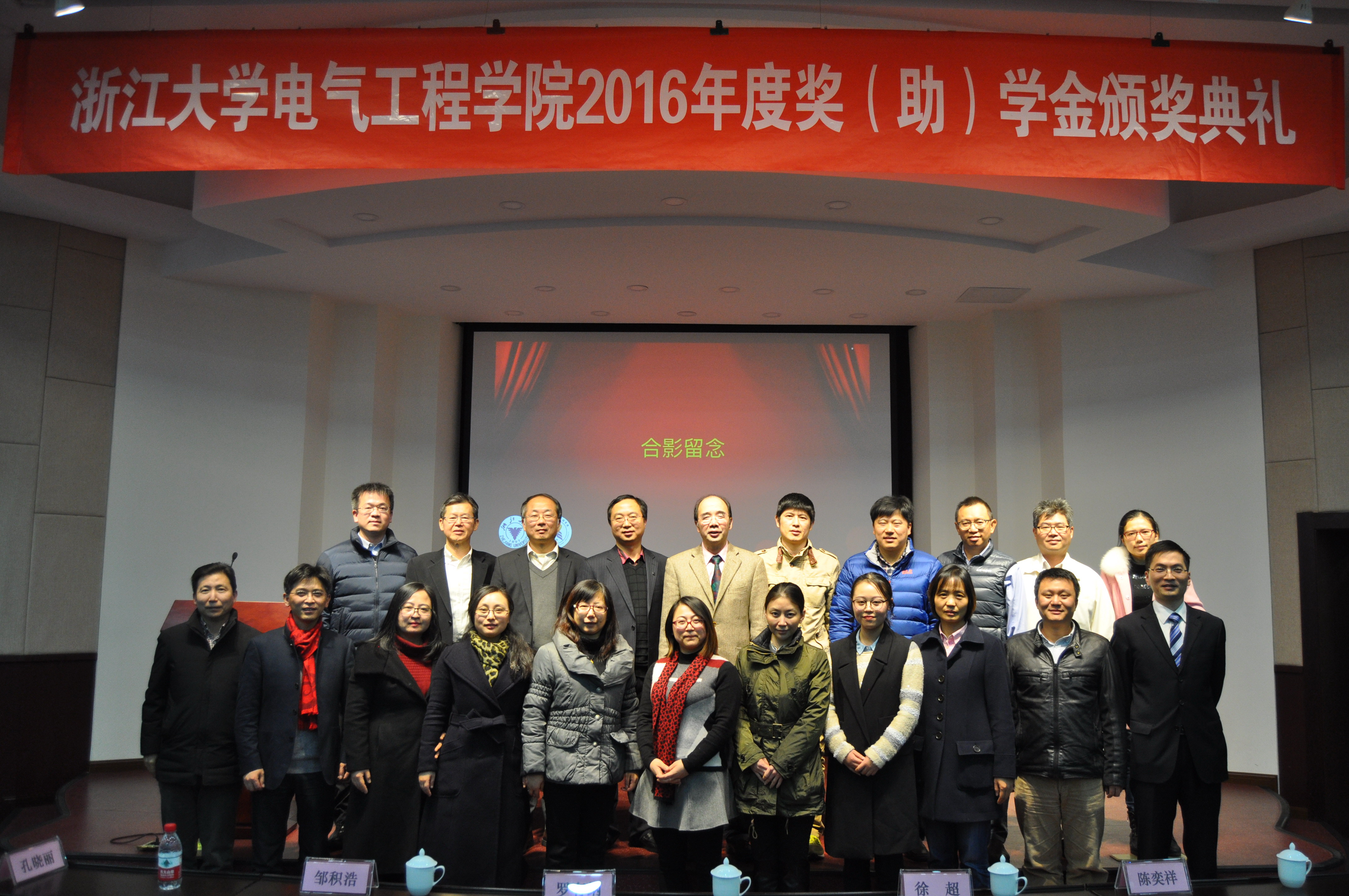 2016年12月16日,浙江大学电气工程学院2016年度奖(助)学金、奖教金颁奖典礼在玉泉校区邵科馆隆重举行。来自卧龙、台达、南瑞继保、光宝科技、东元总合、MPS、康舒、龙旗、尚能、汇川技术、四方股份等设奖企业的代表出席。电气工程学院党委书记王瑞飞、院长助理沈建新等参加了此次颁奖仪式。颁奖仪式由党委副书记陈敏主持。