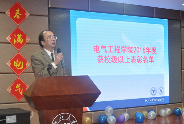 大会同时对学院获2016年度校级以上奖励的单位、个人等进行了表彰,并对学院服务电气奖、科研先进奖、教学先进奖、院级先进奖等奖项的获得者进行了现场颁奖。大会顺利完成了既定的各项议程,凝心聚力、众志成城,为今后的发展指明了方向、明确了目标。