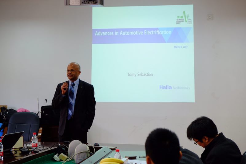 2017年3月8日上午,IEEE工业应用协会主席、Halla Mechatronics电机驱动系统主任Tomy Sebastian博士和IEEE会士、工业应用协会Peter Magyar博士来访浙江大学电气工程学院,介绍IEEE工业应用协会,并作 “汽车电气化的发展”主题讲座。