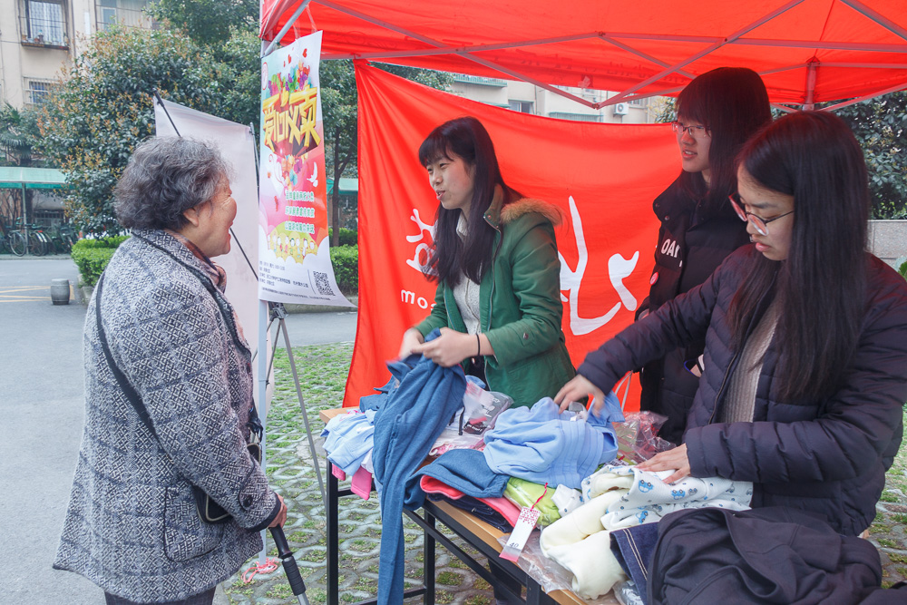 在爱心义卖活动中,志愿者将企业捐助的物资(本次活动为某企业赞助的童装)以很低的价格售卖给小区的居民,之后将所得善款全部用于资助杭州市滴水公益组织的“彩虹学堂”以及“彩虹盒子”公益项目,旨在为山区的孩子提供更好的学习条件。社区的居民给本次社区公益活动提供了很大的支持,短短一个小时,抢手衣物便售卖一空。有一位老爷爷更是慷慨解囊,为公益项目捐助善款。