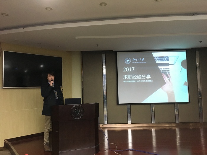 最后分享的是电力电子14级硕士马灵甫,他细致地介绍了几家电力电子毕业生最常去的公司,深入比较了不同电力电子公司的工作情况及区别。马灵甫还分析了电力电子前几届毕业生的就业去向统计,为以后的同学们选择就业提供了很好的参考意见。马灵甫也给出了求职过程中的一些指导和建议。他说同学们要根据自己职业定位和信息全面了解各种就业信息,对公司进行初选,目标尽量要明确,应聘研发岗最关键的是提高自己专业素养。