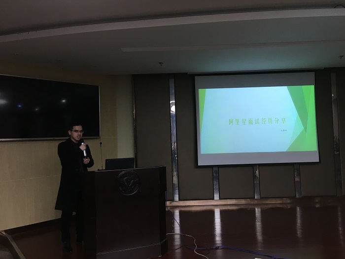 第三个分享的是获得了阿里星offer的汪嘉恒,他详细介绍了自己阿里星求职的整个流程,从简历准备、笔试、技术面试、HR面、终面等各个环节上提供了宝贵的建议,对于想往互联网公司发展的同学们有很大的参考价值。汪嘉恒告诉我们技巧和经验只是锦上添花,实力才是硬道理。我们拥有最好的武器是时间,我们要抓住时间和机会不断充实经历和提升专业能力。