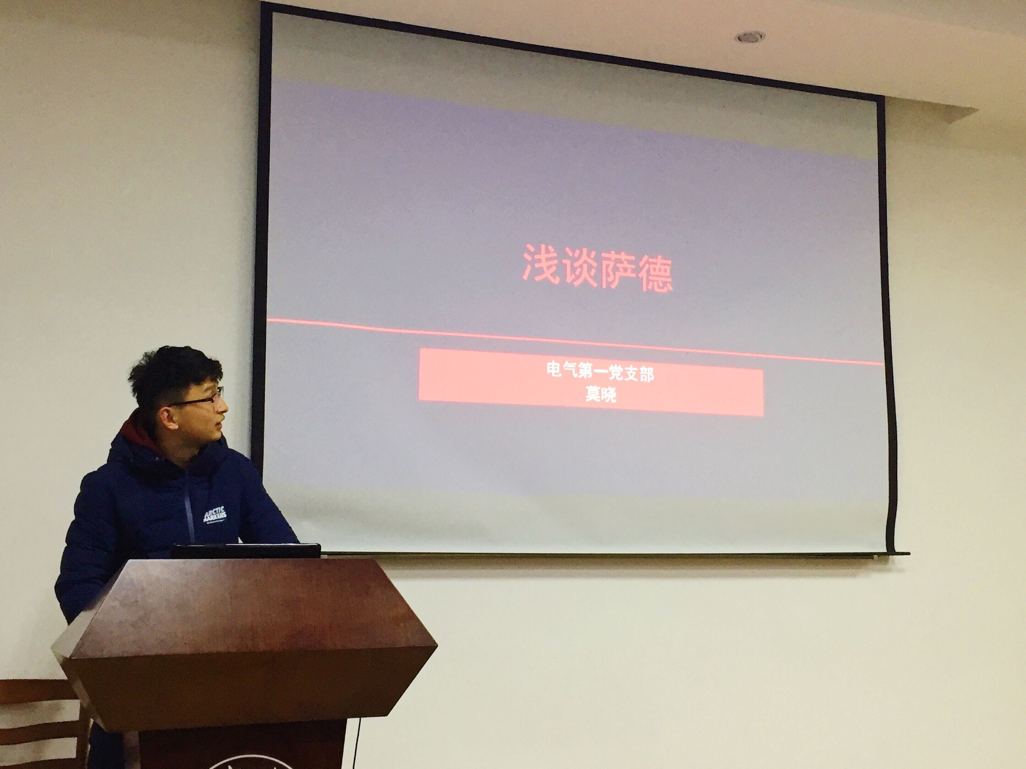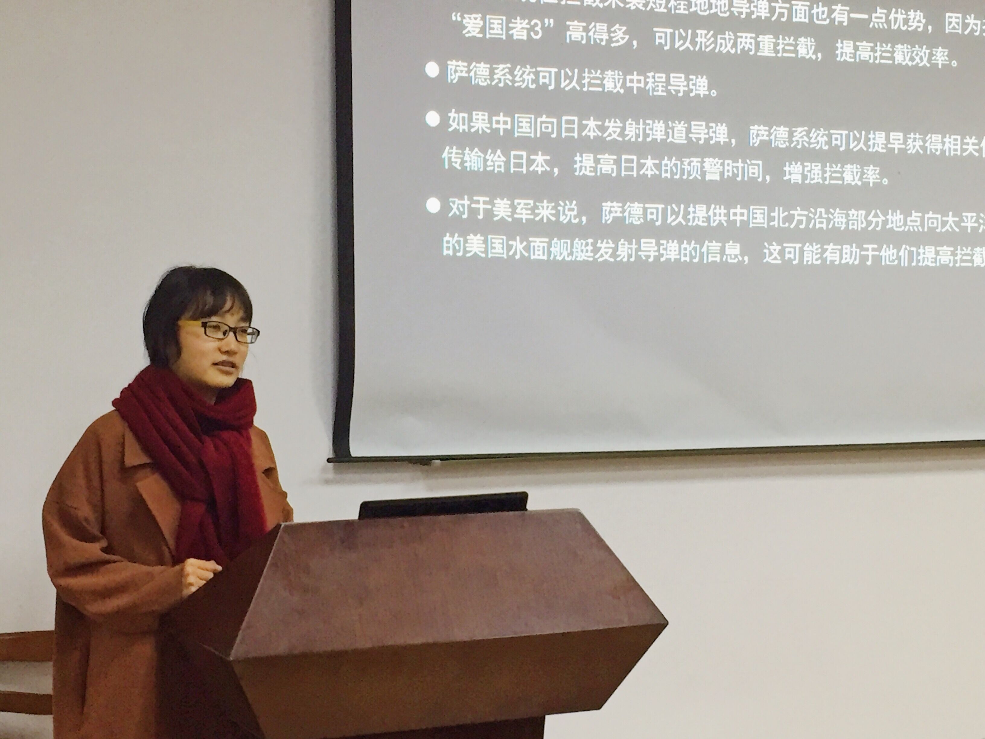 会议首先进行了关于时事热点“萨德事件”的学习,莫晓同学作为宣讲人向大家介绍了详细“萨德”末段高空区域防御系统的特点与整个“萨德”事件发生的前因后果,以及中俄两国的应对措施。