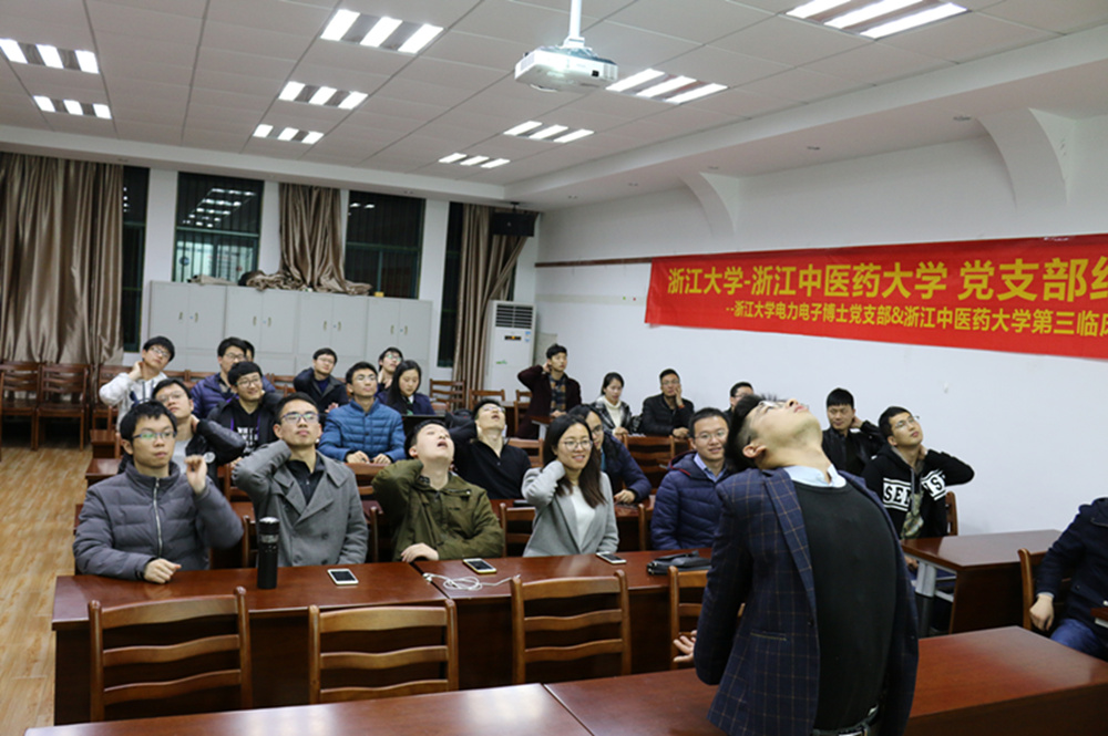 2017年3月23日晚教二121,由我院电力电子博士生第一、二党支部和浙江中医药大学第三临床医学院研究生第六党支部结对举办的“中医颈椎保健专题活动”顺利开展。因为学习科研压力大,不少同学受到颈椎问题困扰。此次活动就旨在普及颈椎疾病的防治知识,增强自我保健意识和技能,以便同学们能更好地投入到学习科研中。