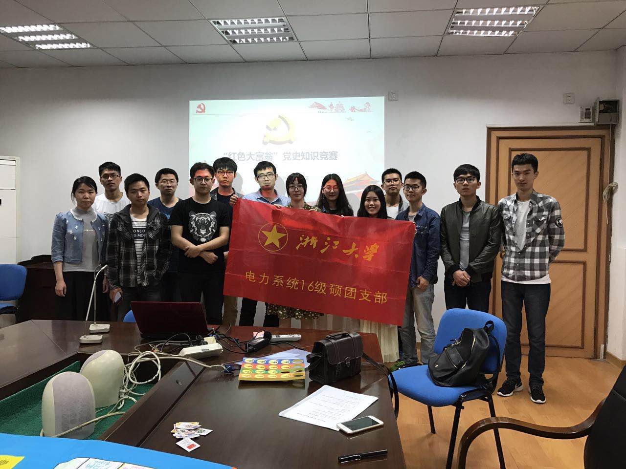 2017年4月20日,浙江大学电气工程学院电力系统2016级硕士团支部在玉泉校区电机工程楼201开展“百廿浙大情 共筑中国梦”的主题团日活动。本次活动以游戏的形式,穿插红色知识问答,在轻松愉快的氛围中让大家学到了很多关于党和国家的历史和现实知识,活动兼具活络团支部同学感情和教育意义。