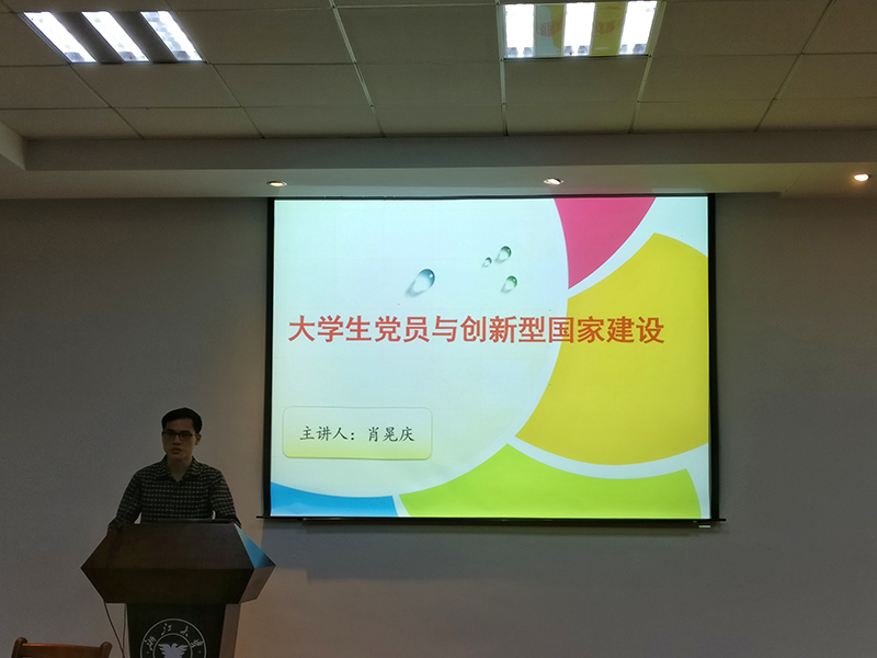 肖晃庆同学则和大家共同探讨了“大学生党员可以为创新型国家做些什么”,他首先介绍了身边同学的优秀事例,既有关心国家大事、学习能力突出的室友,又有科研成果丰硕的竺可桢奖学金获得者,还有成功自主创业的企业家,更有开发出专业软件打破技术垄断的05级师姐。通过这些生动的事例,他告诉我们为建设创新型国家,大学生党员应志存高远,可以选择刻苦科研、做出世界级的科研成果,可以发挥个人优势、打造高科技创新创业团队,也可以勤勤恳恳打破技术垄断、做一名世界级工程师。