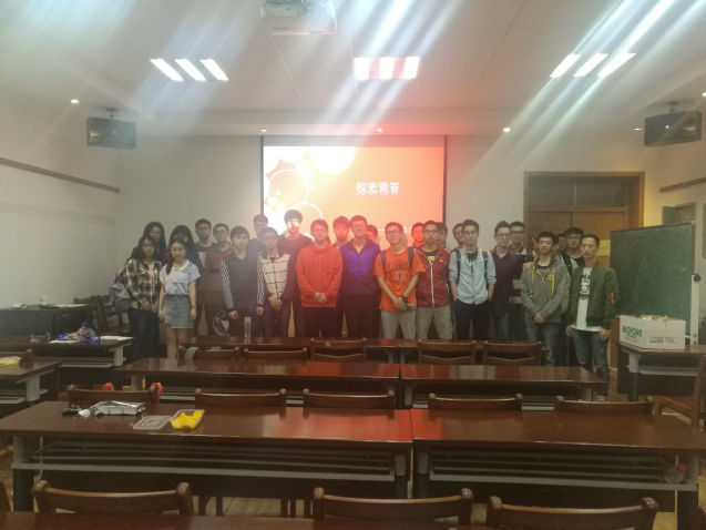 然后我们进行了校史小问题竞答活动,不仅是检验和进一步巩固刚才的学习,也是对认真听讲学习的团员们进行鼓励。问题以幻灯片形式展示,同学们在班级群里进行抢答。从中我们还更加清晰地了解了我校的导师制由来、我校西迁史的几个办校地点以及校歌的作曲者。