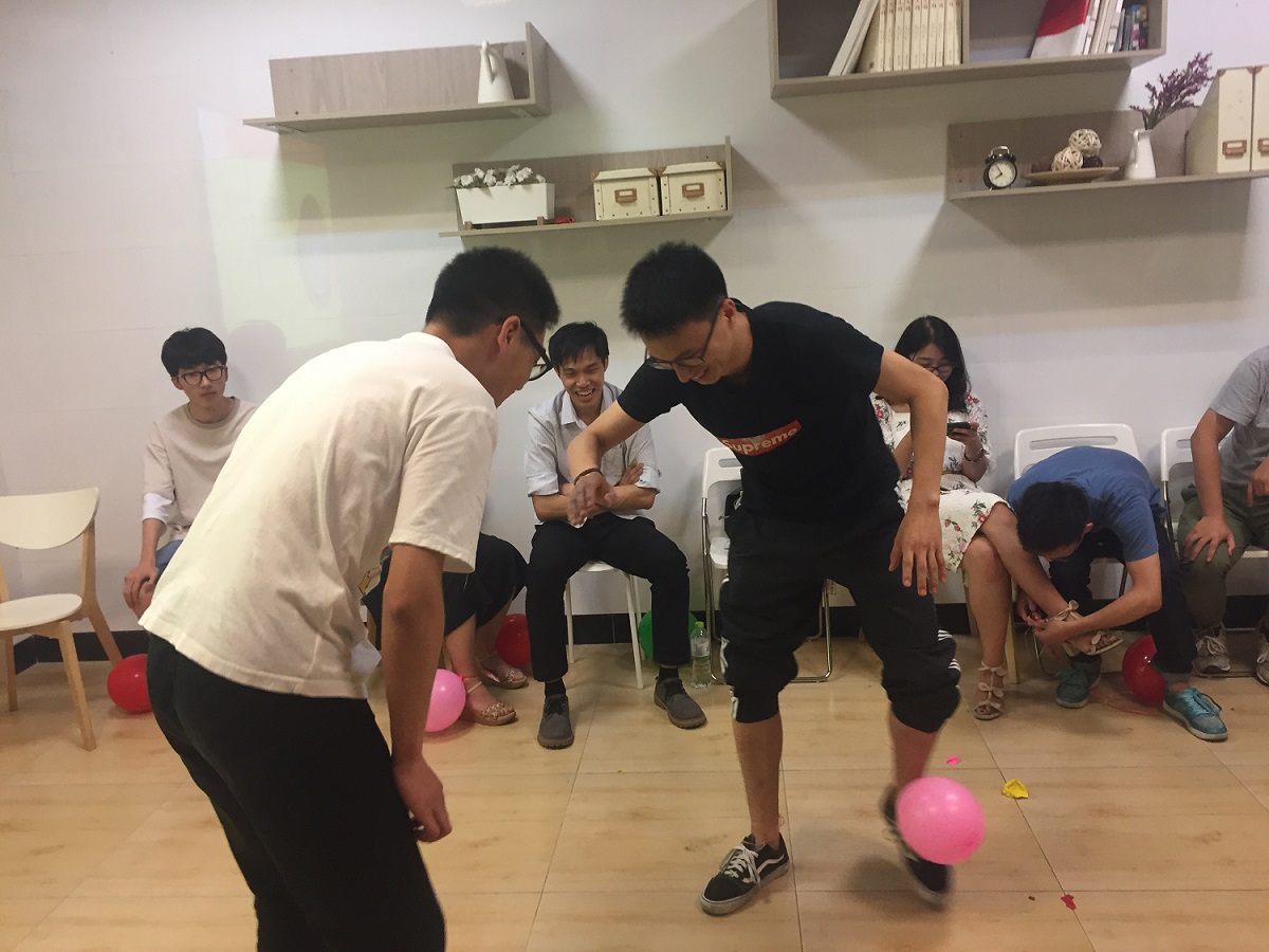 然后,党员同志们进行了“同心协力,共抗时艰”的踩气球游戏,考验了各组的团队协作力以及战术安排能力。