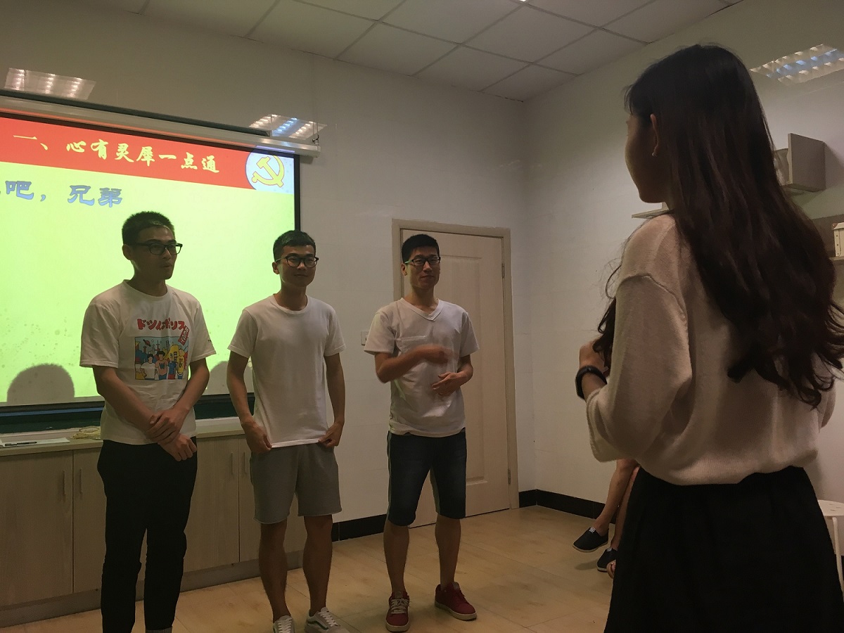 最后,党员同志们进行了“听声辩名”的游戏,主要是考验了大家对红歌以及党史的熟悉程度。