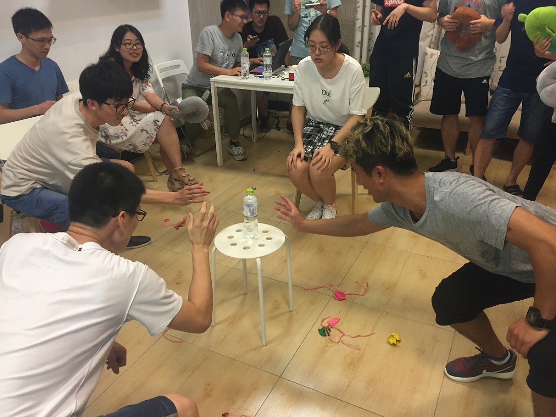 晚上七点,党员同志们在常青藤小屋集合,根据抽取气球的颜色分为了红、蓝、黄、绿四个小组,以游戏闯关的形式进行学习。