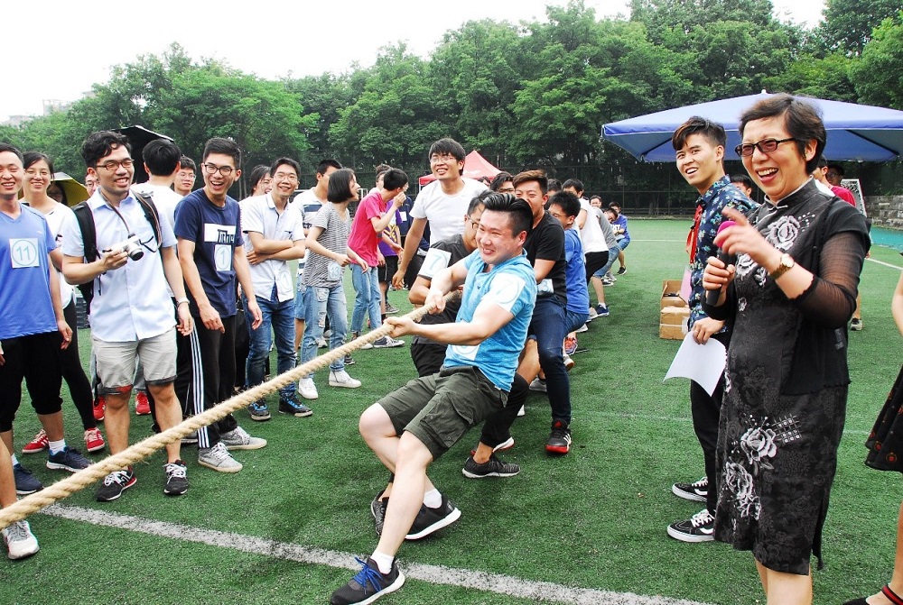 与上一届趣味运动会不同的是,本次开场增加了一项开场活动——师生拔河比赛。每支队伍各出一位同学和老师参加。经过主持人简短的开场白和规则介绍,在电气工程学院综合办主任杨敏虹老师喊下开始号令后,拔河比赛正式开始。比赛场面十分激烈,现场气氛也在加油的呐喊声中被炒热了起来,在欢声笑语中本届趣味运动会的序幕就此拉开,获胜方均获得由学院工会为大家准备的精美礼品。
