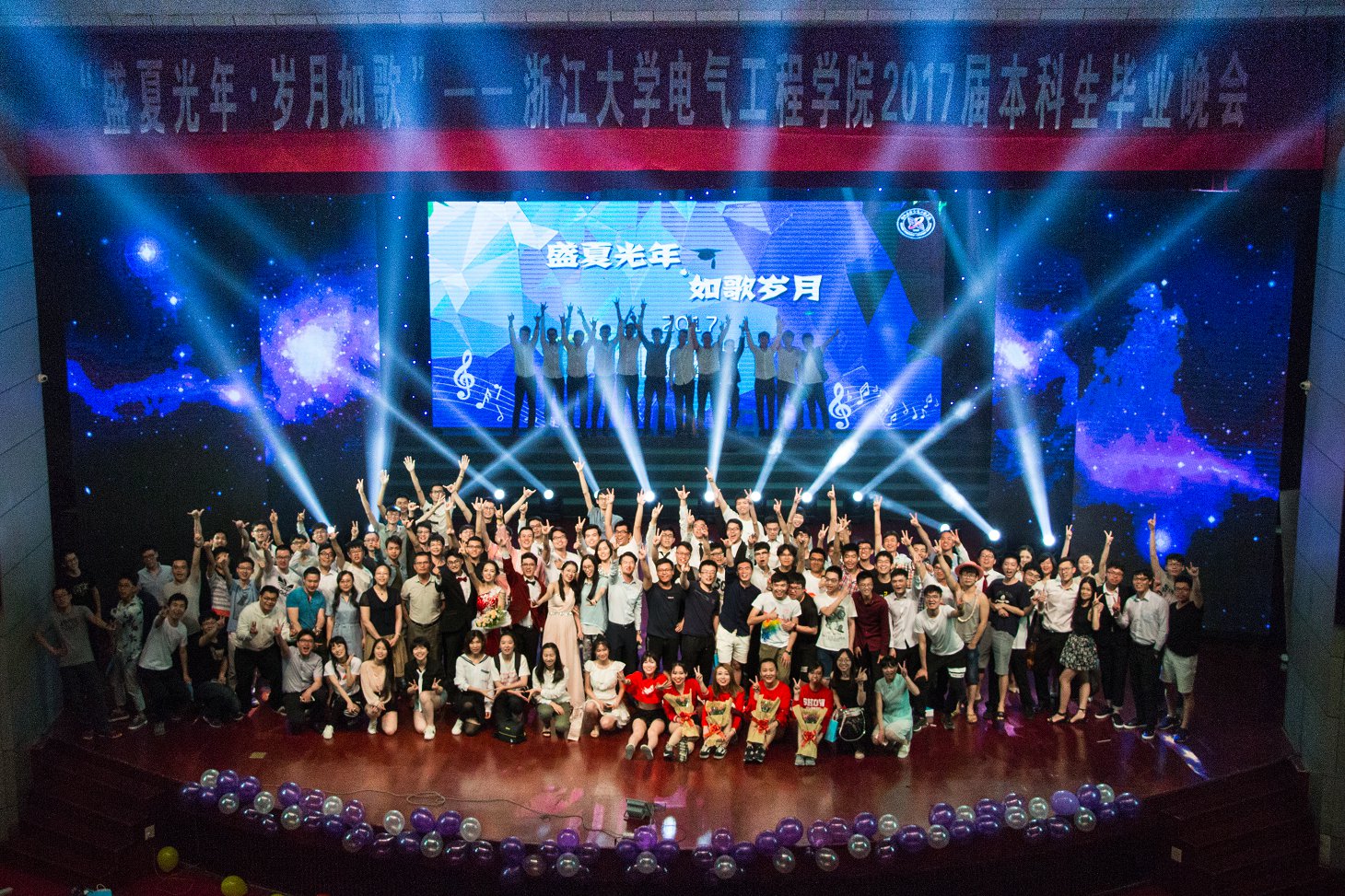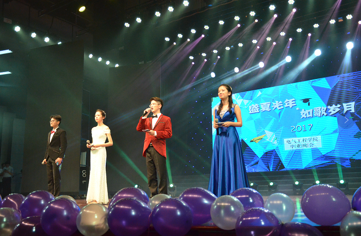 2017年6月22日晚18:30,电气工程学院2017届“盛夏光年•如歌岁月”毕业晚会在玉泉永谦剧场温情启幕。毕业学子和老师们欢聚一堂,共同回味四年的点滴光阴,眺望未来的美好风景。