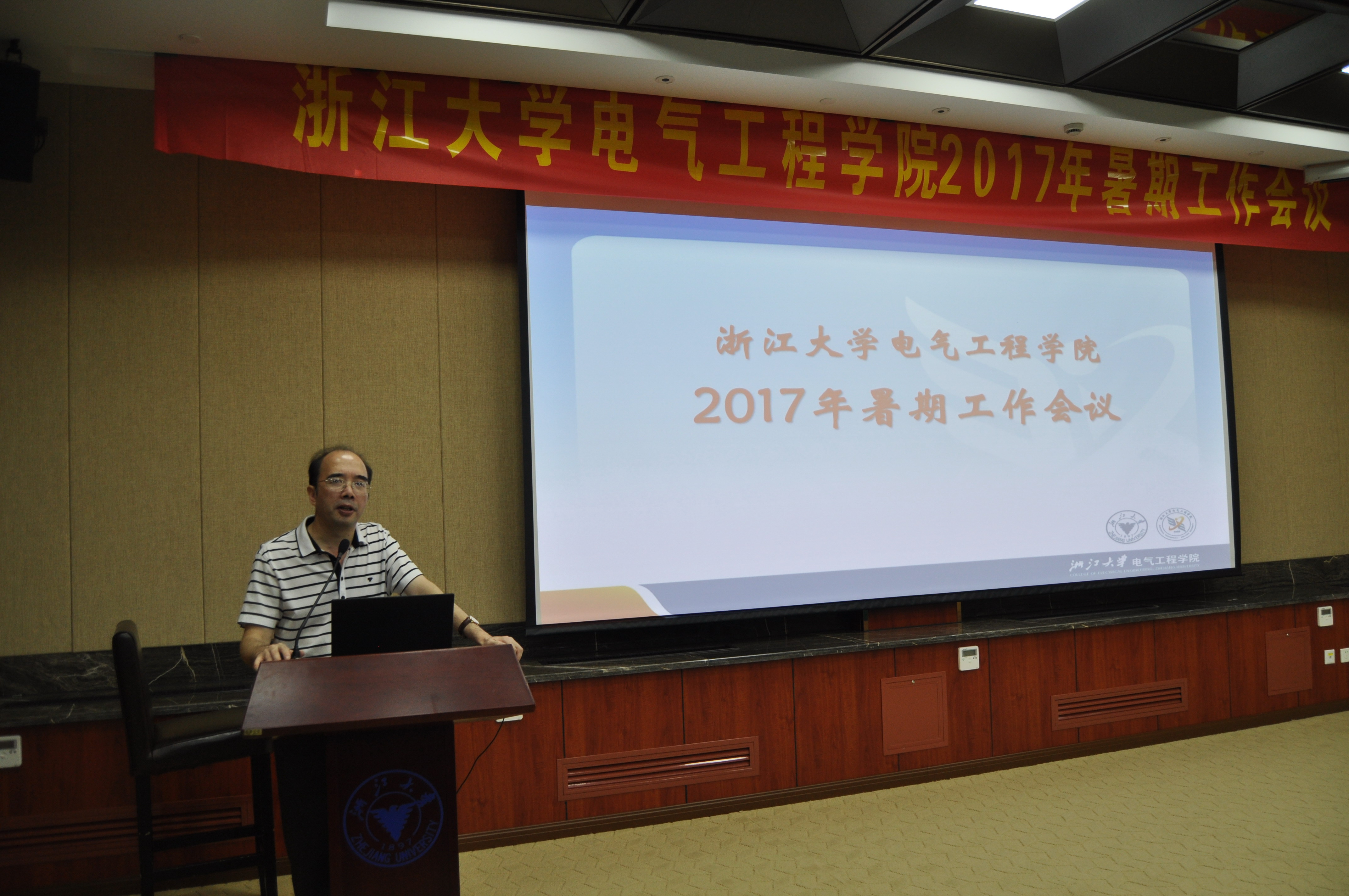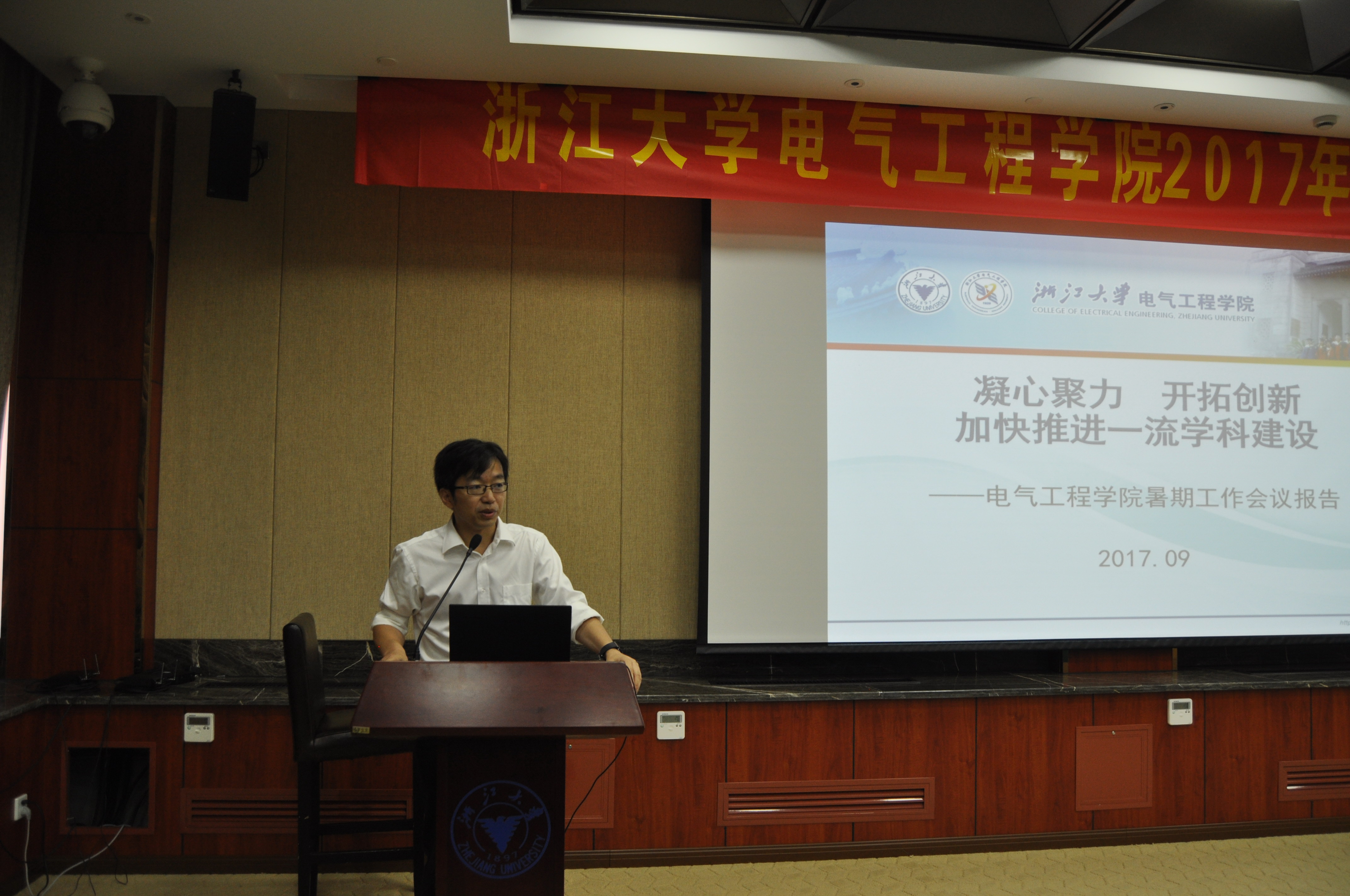 2017年9月12日,浙江大学电气工程学院开学初学期工作会议在玉泉邵科馆召开。在国家全面推进高校“双一流”建设的历史节点,在学院新老领导班子交接的关键时期,学院旨在通过此次会议进一步凝心聚力、进一步改革创新,举全院之力、集全院之智,共谋加快推进一流学科建设的新举措、新思路,率先进入世界一流行列。学院新一届领导班子成员及全体教授、骨干教师等80余人参加了此次会议。大会由党委书记王瑞飞主持。