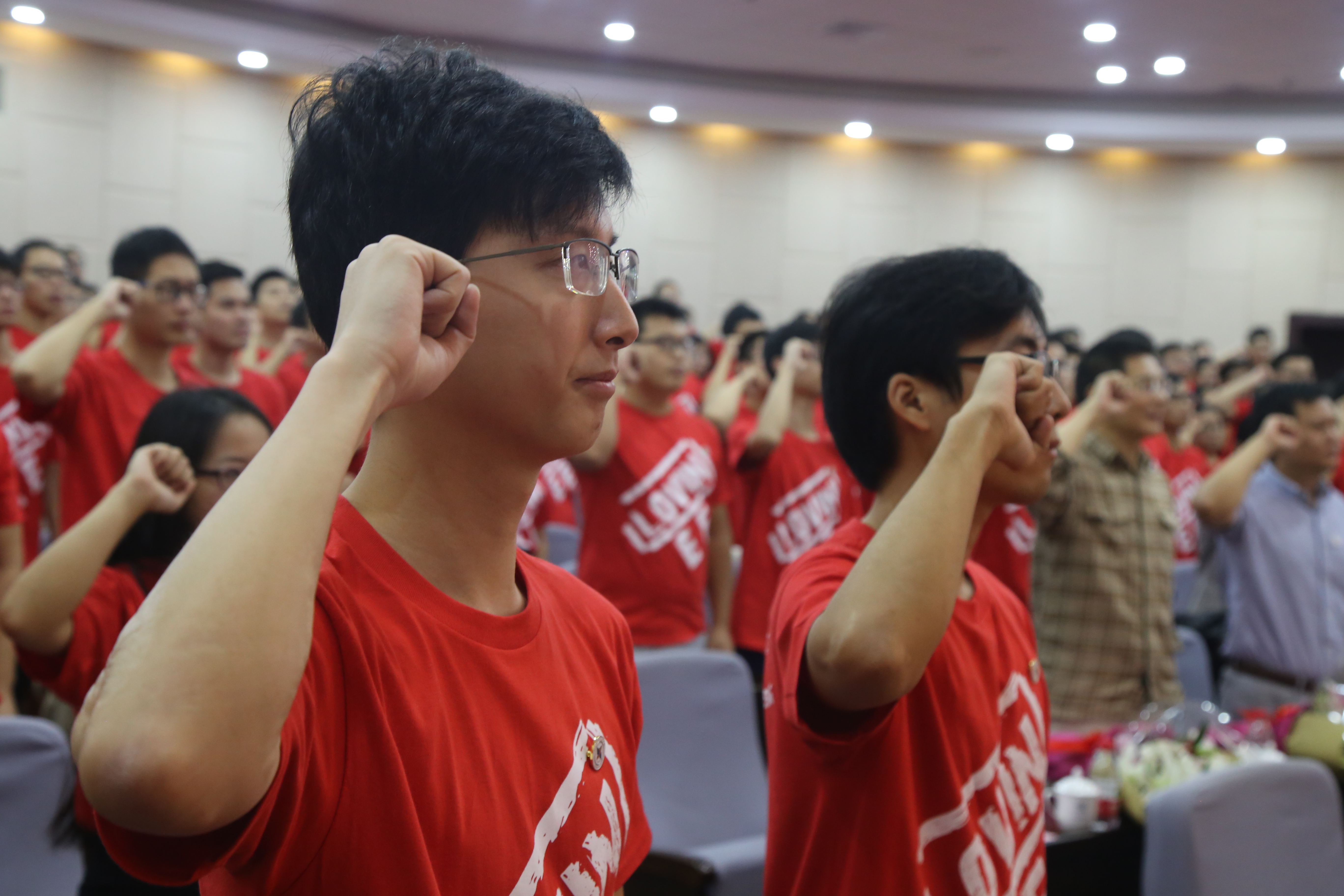 “让我们青蓝携手,再续荣光”。一段由师生共同表演的《青蓝共筑电气梦》诗朗诵将现场的气氛推向高潮。沈建新老师、黄晓艳老师和研究生老生们,用自己的亲身经历为在场的同学答疑解惑,坚定初心,不忘肩上的重担。在佩戴院徽环节结束后,陈向荣老师带领同学们庄严许下电气人的誓言。铿锵有力誓言映衬下的朝气蓬勃的面孔,将会在“浙里电气”度过人生最美好的几年求学时光。