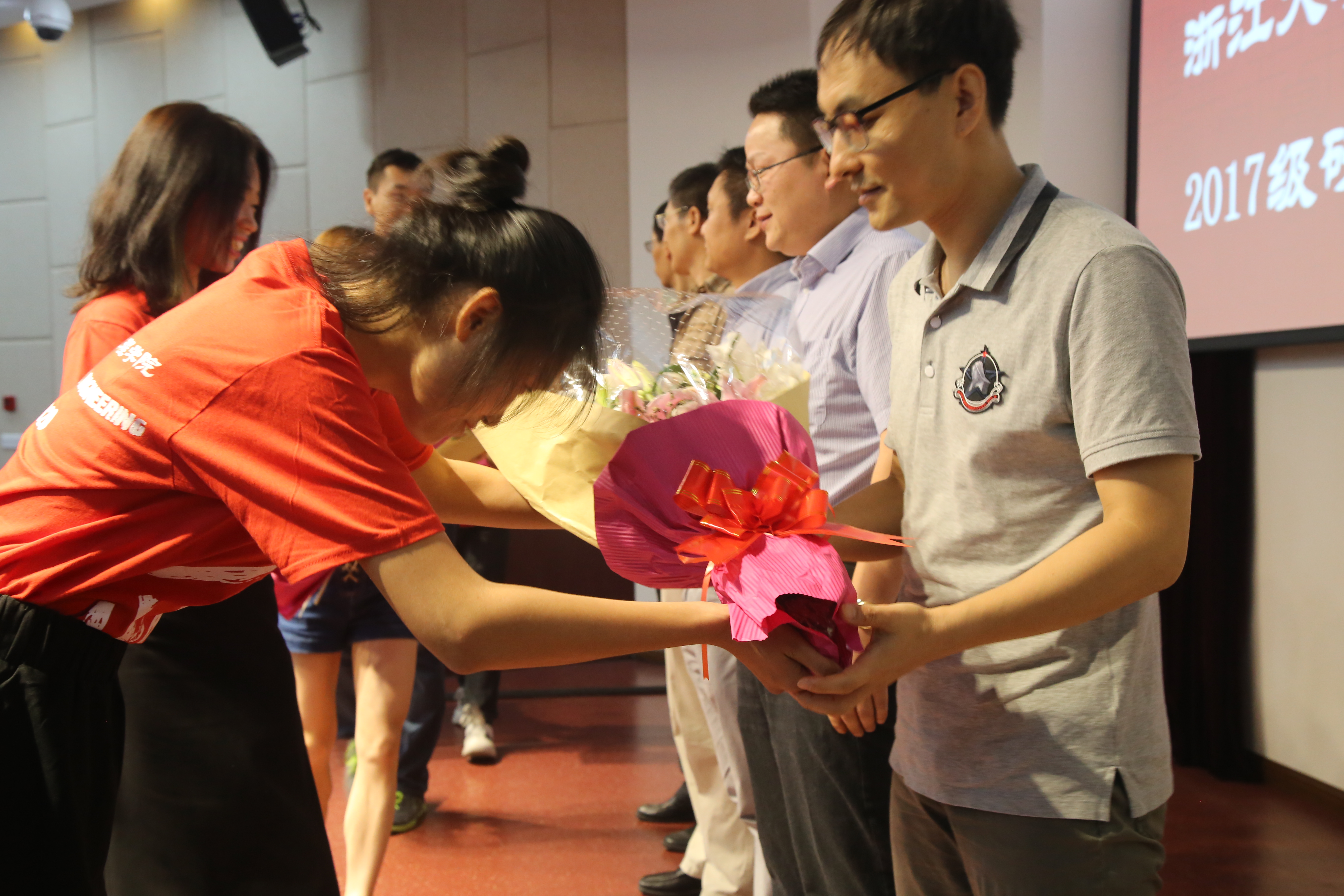 最后,学院党委书记王瑞飞老师代表学院领导、老师们向在场同学送上寄语,同时也对新生们提出了四点希望:重新规划自己未来的道路、端正心态、强健体魄以及树立一流的意识。他指出,17级的研究生同学要始终牢记浙大电气人的使命,不忘学院优良传统,培养开放的心态,努力做到兼容并包,争取做出社会和人民永远不会忘记的贡献。