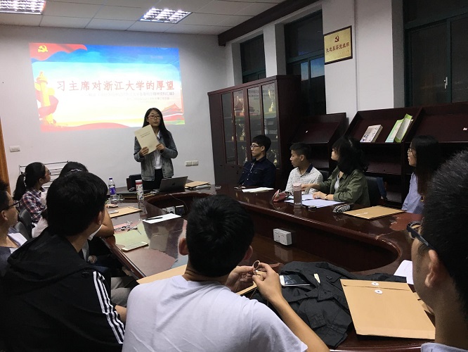 在听完张书研同学的分享后,党支部内部根据学习话题展开了热烈的讨论。各位同学就如何从自身做起,为建设浙江大学成为世界一流大学做出贡献发表了各自的见解。我们身处浙江大学向世界一流大学迈进的关键时期,应明确自己作为浙大人的责任与使命,用更高的标准要求自己,贡献出自己的一份力量。