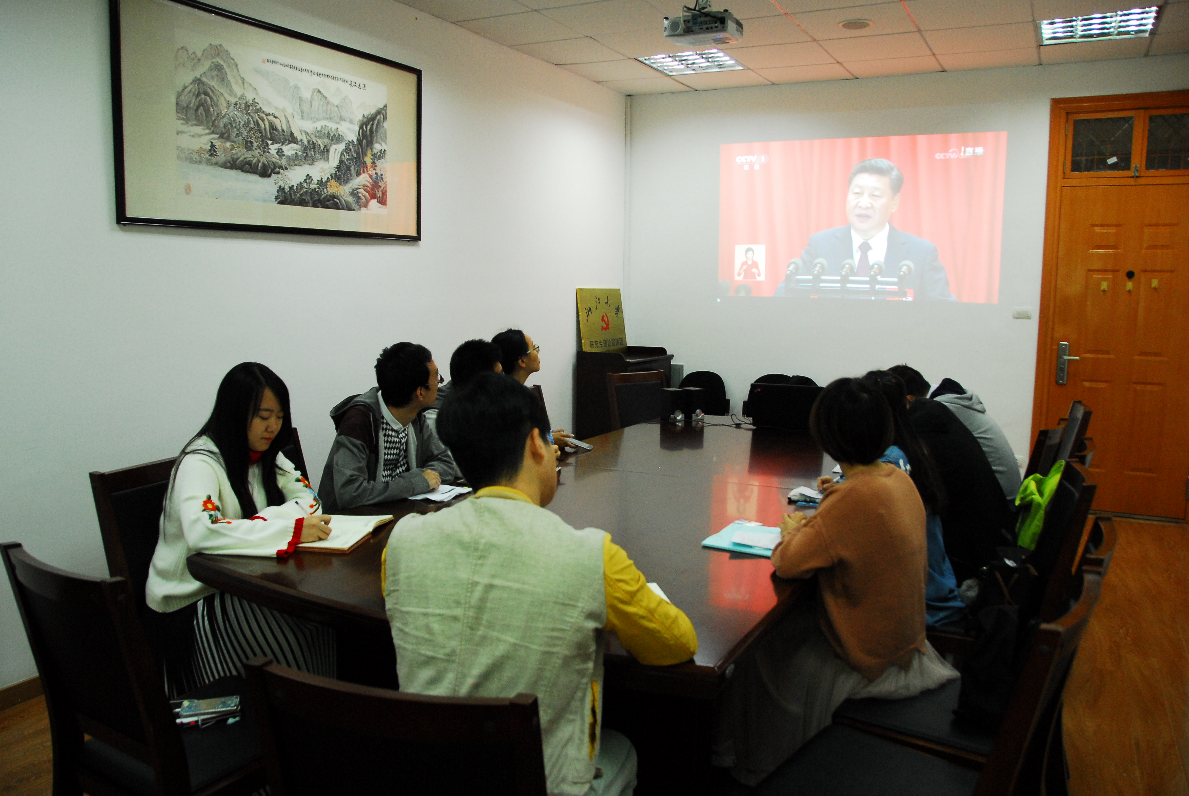 为全面了解十九大实况,领会十九大精神,电气工程学院组织学院领导班子成员、党委委员、各党支部书记、学生骨干集中收看十九大开幕会直播,学习领会习近平总书记所作大会报告精神。