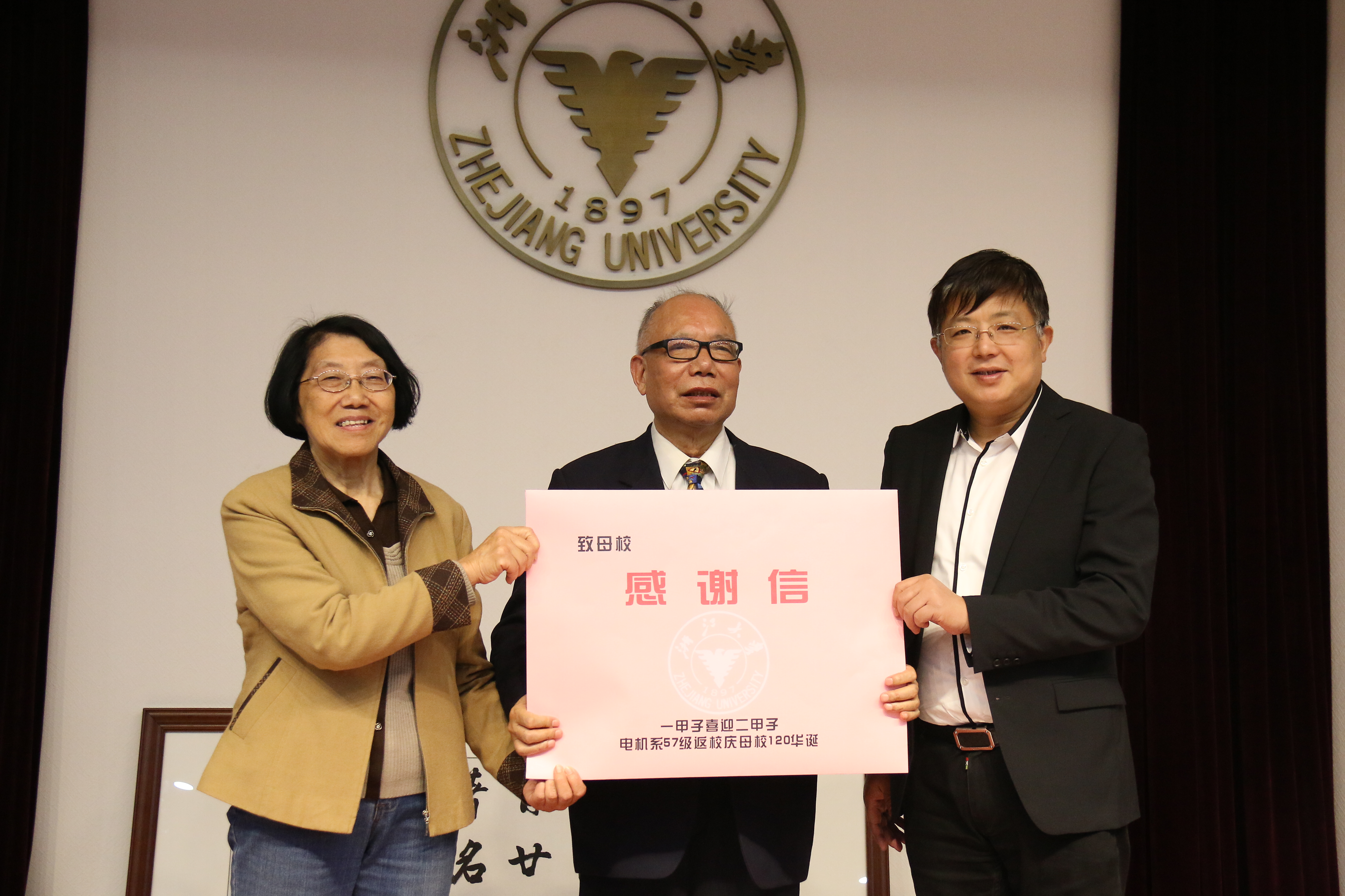【编者按】 这是一封浙江大学电气工程学院电机系57级校友致母校的感谢信。2017年10月24日上午,电机系57级整个年级、八个专业一百四十余名校友相约重返求是园,共祝母校百廿华诞。悠悠六十载,拳拳赤子心。故园依旧,只是当年风华正茂的少年,而今已是耄耋老人。岁月更迭、沧海桑田,不变的是那颗感恩母校的心,是烙印在每个人身上“浙大人”的标记。
