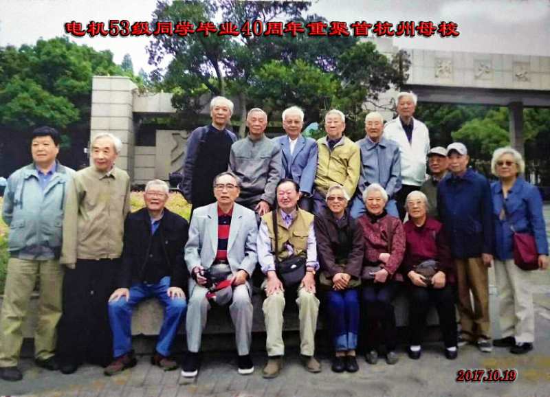 浙江大学电机系53班校友时隔60周年再聚杭城。原本淅淅沥沥的秋雨也为这60年的同学情谊所感动而骤然停止。电机53班60周年同学聚会于2017年10月18日至20日在杭州顺利举行。