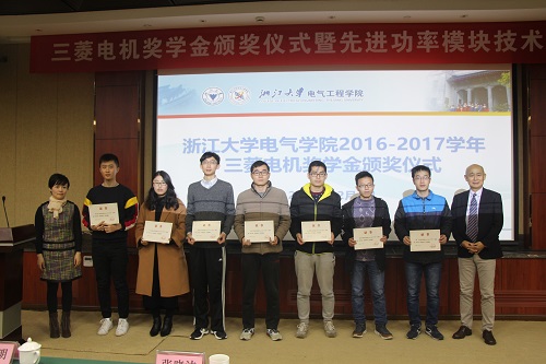2017年12月4日,浙江大学电气工程学院三菱电机奖学金颁奖仪式暨先进功率模块技术研讨会在玉泉校区邵科馆211隆重举行。三菱电机半导体大中国区总经理四个所大亮、三菱电机半导体大中国区技术总监宋高升、三菱电机半导体大中国区应用技术经理马先奎、三菱电机半导体大中国区项目经理陆思清等代表设奖单位出席。电气工程学院党委副书记张晓洁,学院老师张军明、邓焰、姚文熙、陈敏参加了此次颁奖仪式。颁奖仪式由张军明老师主持。