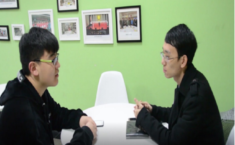 第二组展示者是大三的积极分子张谦同学。小组采访教研中心支部书记杨冀辰老师和优秀党员王金亮同学。杨冀辰老师向同学们讲述了他对十九大主题“不忘初心,牢记使命”的理解,认为这个主题是非常必要的,与党的宗旨“为人民服务”相契合。王金亮同学在回答采访者的若干问题中,展现他深刻的思想与大局观,体现年轻党员的优良风貌,值得同龄人的学习。