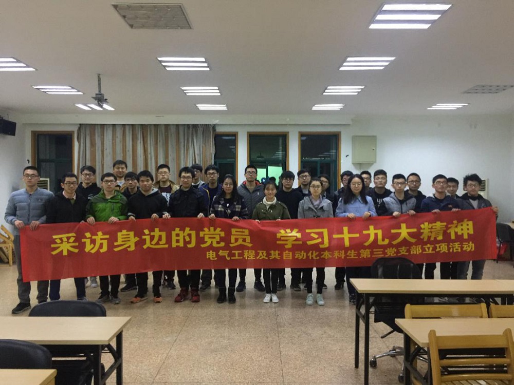 2017年12月3日18:30,电气工程及其自动化本科生第三党支部在电机楼418召开了“采访身边的党员,学习十九大精神”立项活动总结会。