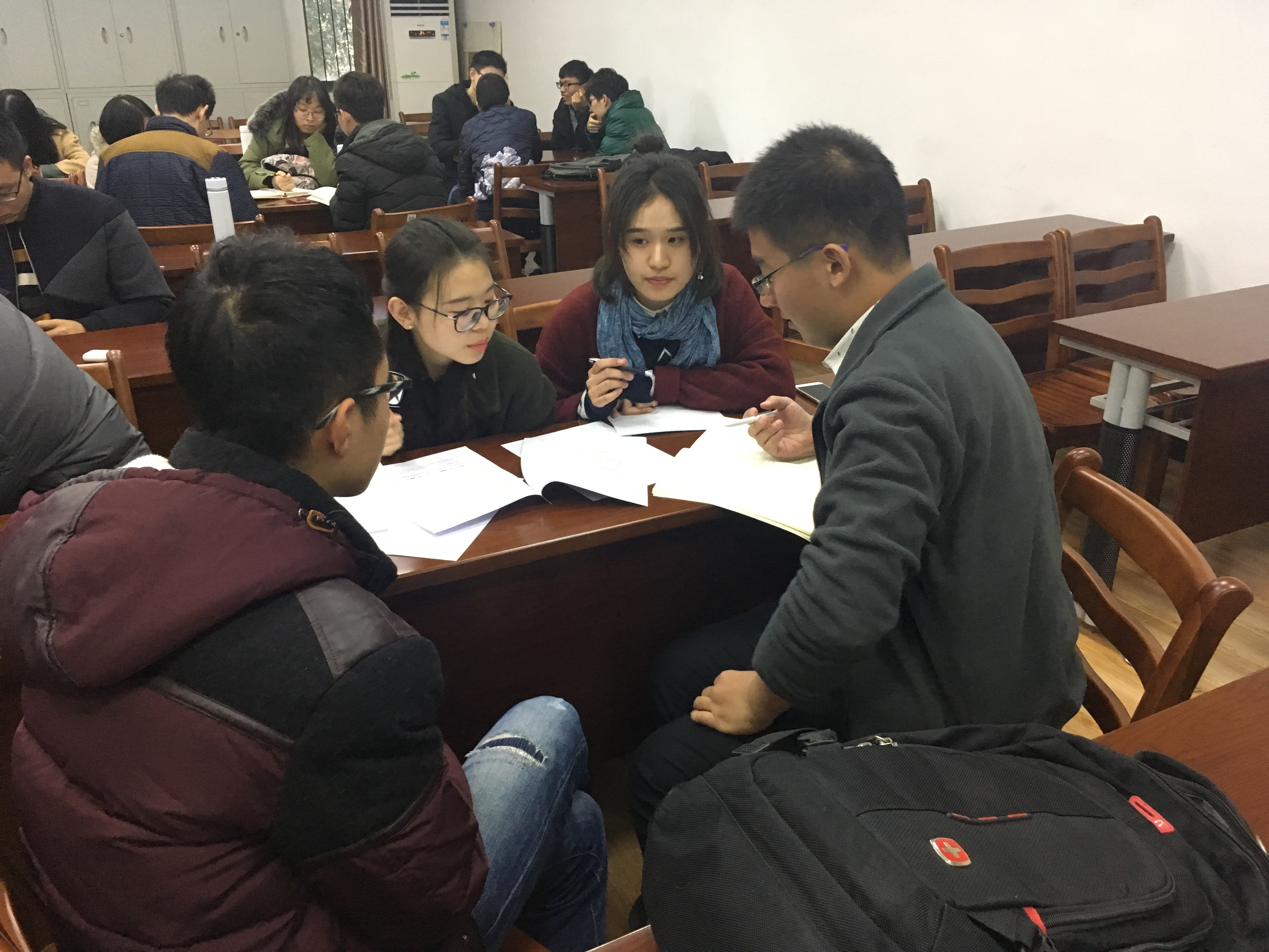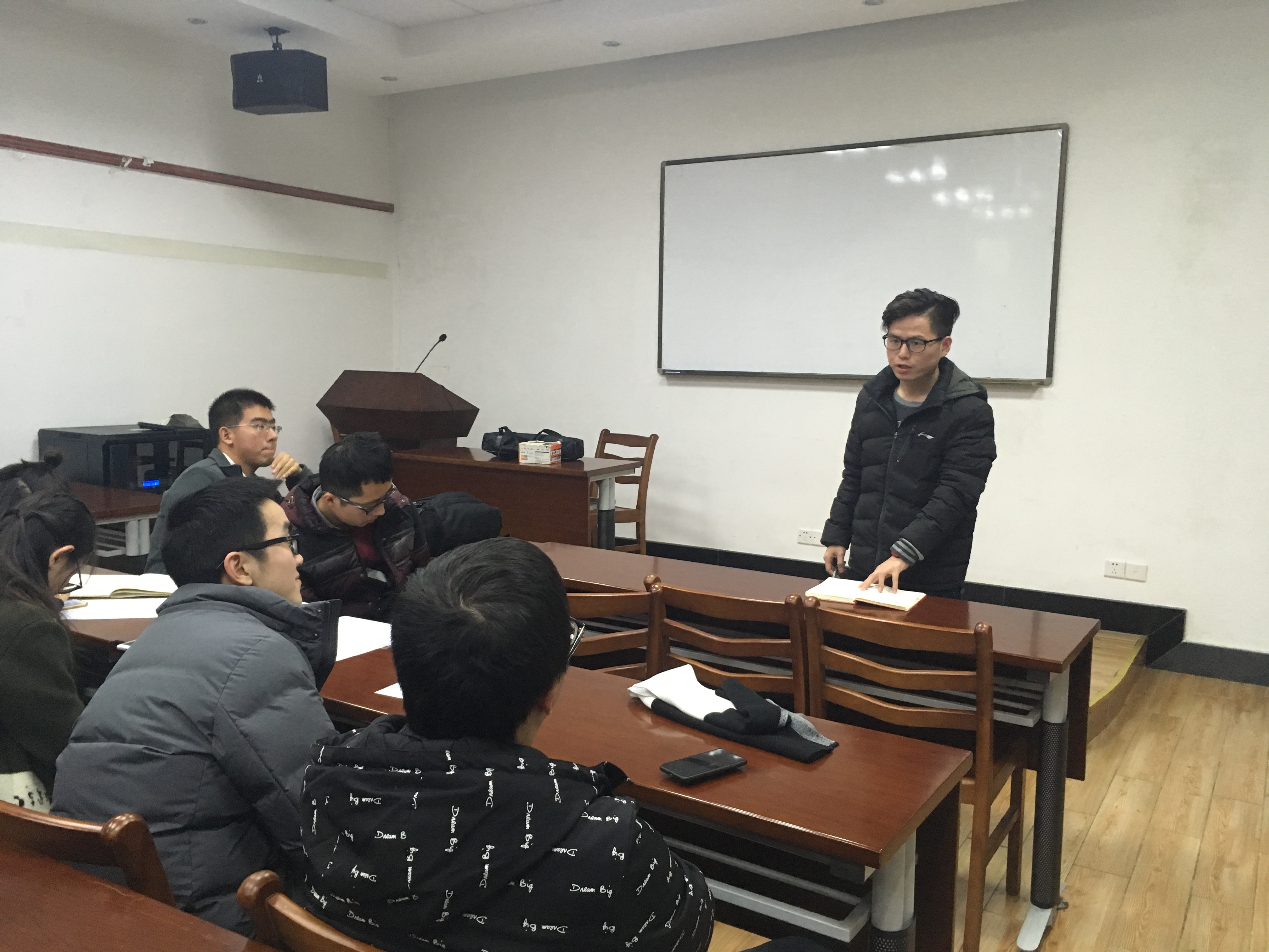 12月9日下午,在教二121举行了“党员热议十九大”主题研讨会。研讨会由《中国的红色梦想》和《300秒速览十九大报告》两段短视频作为引子,两段视频分别来自人民日报和新华社。而后,学员们围绕中国梦、新时代、社会主要矛盾转化、从严治党、美丽中国、依宪治国等十九大热词,分组展开深入的学习和研讨。在研讨的过程中,不乏一些新颖的观点和想法。在研讨会的最后,每组都向大家汇报了研讨成果,所有学员在充分的学习和交流探讨中获得了思维方式的启发和理论素养的提升。