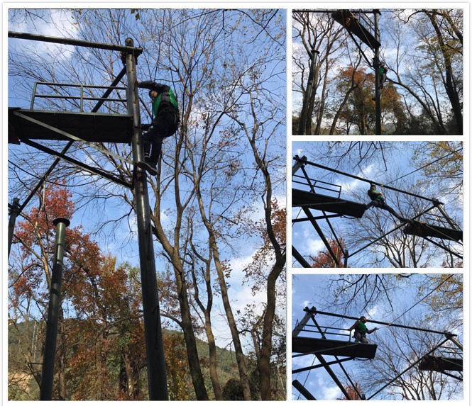 之后,大家又进行了地雷方阵和空中抓杠等项目的挑战。在诸多项目中,最让大家苦恼的就是空中抓杠,要求大家在离地高度八米的木板上,要完成1.5米的跳跃。虽然已经做好了保护措施,但当大家真正站上高空时,内心还是十分紧张的,很多同志站在木板不敢往前跳。但是在大家的一遍又一遍加油声中,一次又一次打气鼓励中,最终每位同志都完成了挑战。在这个项目中,不仅看到了每位同志的勇敢和敢于尝试,更看到了支部的团结力和凝聚力,到顶了大家为你喝彩,失败了我们看你再来。这次比赛,更是在近几月以来各种支部会议、生活会后为大家的集体归属感进行了一次不小的升华。