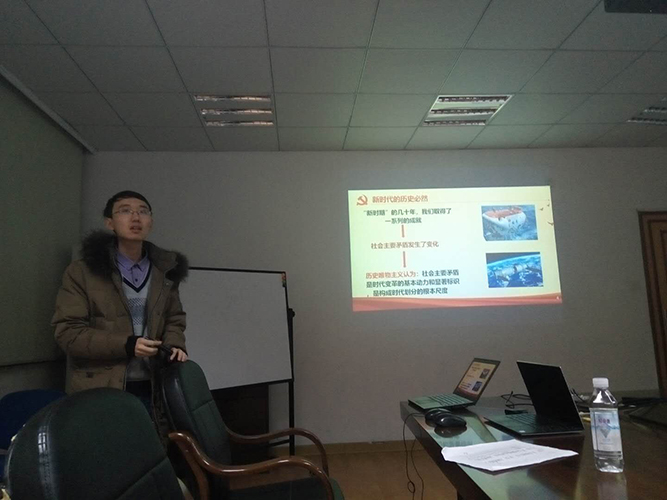 为学习党的十九大精神,理解领悟十九大要义,2017年12月20日晚6:30,电机所及航天所博士生党支部在电机工程楼201开展了微党课学习。支部有幸邀请了浙江大学研究生理论宣讲团的陈光普和孙翀担任这次的党课讲师,带领大家一起学习体会十九大中提出的新时代的内涵与外延。