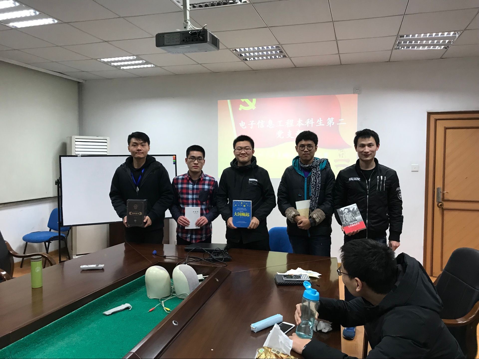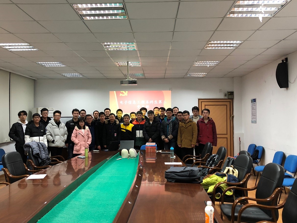 2017年12月18日19:00,电子信息工程本科生第二党支部在电机工程楼201召开例会,本次会议由李静航书记主持。会议的议题是周潇和许晨航同志作微党课分享以及党支部立项活动——十九大主题征文演讲比赛。