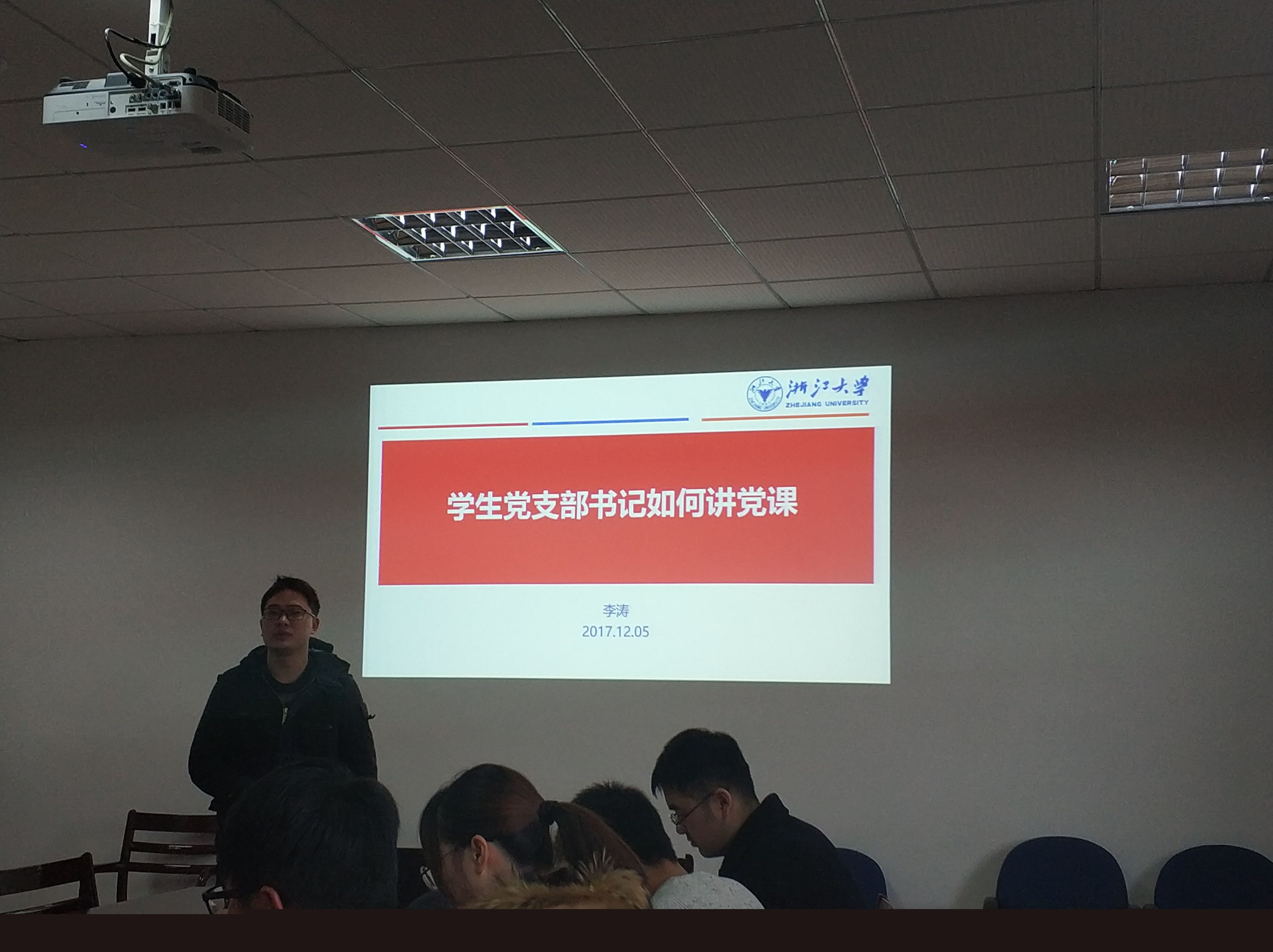2017年12月21日下午,在玉泉校区第二教学大楼405室召开了电气学院研究生党支部书记培训交流会。会上,浙江大学研究生理论宣讲团指导老师、电气学院团委副书记、辅导员李涛老师为支部书记做了关于“学生党支部书记如何讲党课”的培训,电机与电器2017级硕士生党支部书记刘亚男同学做了《习近平的七年知青岁月》读书分享。
