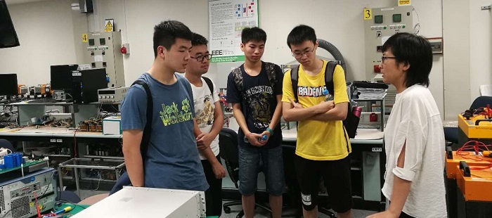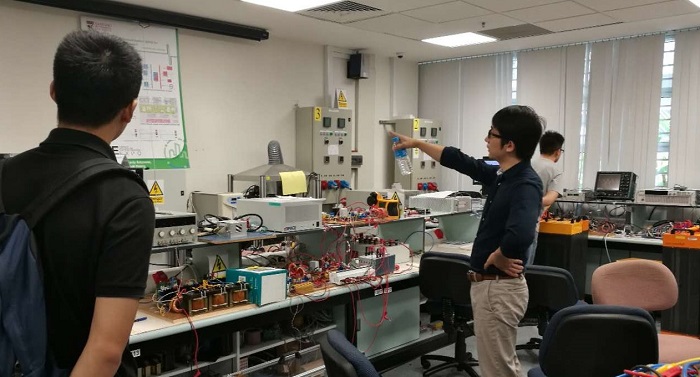 随后,访学团的同学在徐老师的带领下参观了EEE学院电力及电力电子实验室。徐老师向大家介绍了实验室各个项目的成果,讲解了各个模块的工作原理。实验室与新加坡政府有密切的合作,在交直流微网、电力电子控制等领域闻名全球。