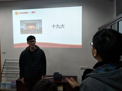 为深入学习贯彻党的十九大精神和习近平新时期中国特色社会主义思想,提高支部成员的政治素养和理论水平,加强党支部的凝聚力和战斗力,电力经济17硕党支部于2017年12月29日举办了一次别开生面的立项活动——“十九大”主题知识竞赛。
