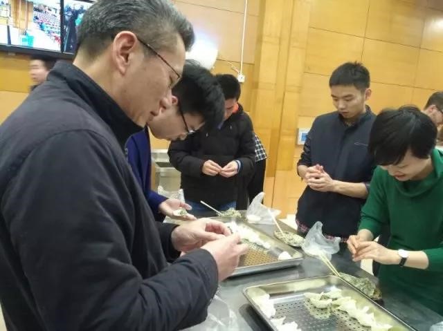 2017年12月31日下午,浙江大学第四届学生节系列活动之一的“团圆饺,求是情”迎新年,包饺子活动在玉泉校区四食堂二楼顺利开展。电气工程学院、玉泉校区管委会、后勤集团的领导和老师来到活动现场,与同学们一起包饺子,并送来了新年的祝福。