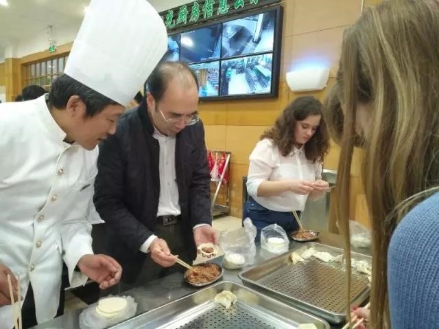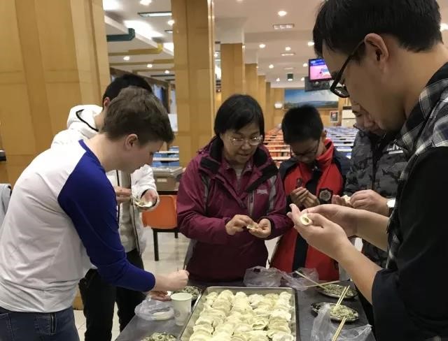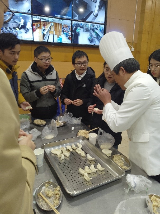 饺子都吃过,但包饺子对许多人来说却是第一次。小小的饺子看起来简单,但包起来着实不容易,包馅如何包的量足还不露馅可是技术活。但这点难度阻挡不了学生们的包饺子热情,大家纷纷洗干净手,虚心地向食堂师傅请教如何包饺子。