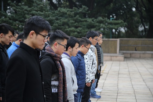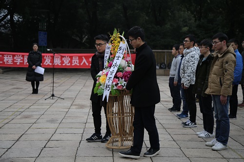 参观结束后,新党员宣誓仪式在革命烈士纪念碑前正式开始。全场肃立,奏唱中华人民共和国国歌。随后由两名新发展党员代表向纪念碑敬献花圈,全体新党员向革命烈士三鞠躬,表达对为民族解放和国家独立而牺牲的英雄的崇敬之情。