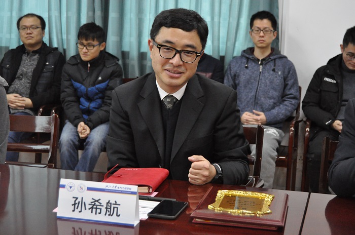 孙希航在致辞中深情回顾了自己在电气工程学院自动化专业的求学之路,与在场师生分享了读博深造和创业历程,他表示在母校的求学经历锻炼了自己求是创新、勇往直前的精神与韧劲,虽然离开母校十余年,但始终心系母校,难忘母校的培养之恩。他鼓励研究生们踏实做学问,认定一个研究领域并持之以恒的坚持下去。他希望电气工程学科早日迈向世界一流,不断为社会培养更多优秀人才。