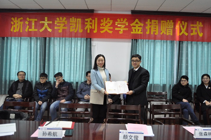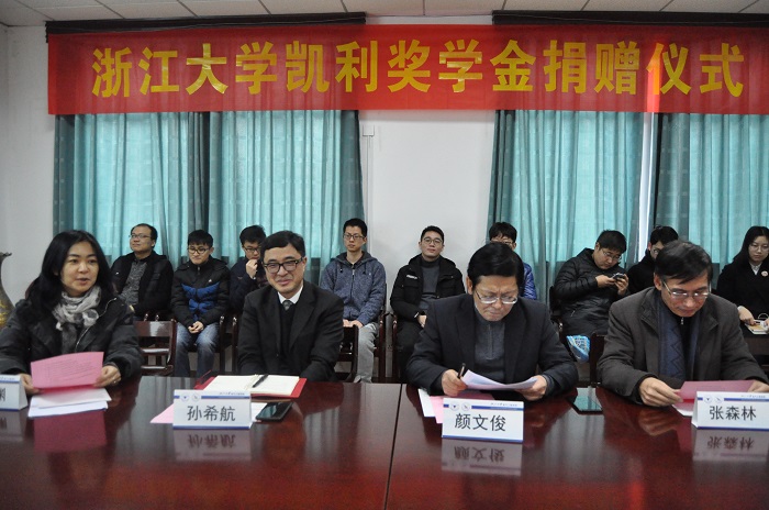 浙江大学电气工程学院优秀校友、浙江凯利新材料股份有限公司董事孙希航,浙江大学电气工程学院党委书记王瑞飞、党委副书记张晓洁、副院长齐冬莲和学校发展联络办发展三部部长阎文雯出席捐赠仪式。