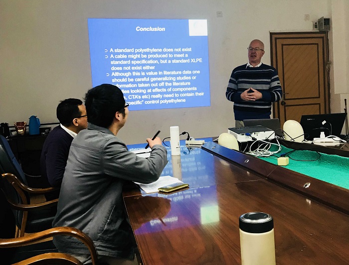 报告结束后,Detlef F. Wald先生与在场师生就未来电缆绝缘材料的发展方向、XLPE电缆生产的去气过程、交流XLPE电缆与直流XLPE电缆的差异、氧气在材料聚合反应中的影响等方面问题进行了热烈的讨论。