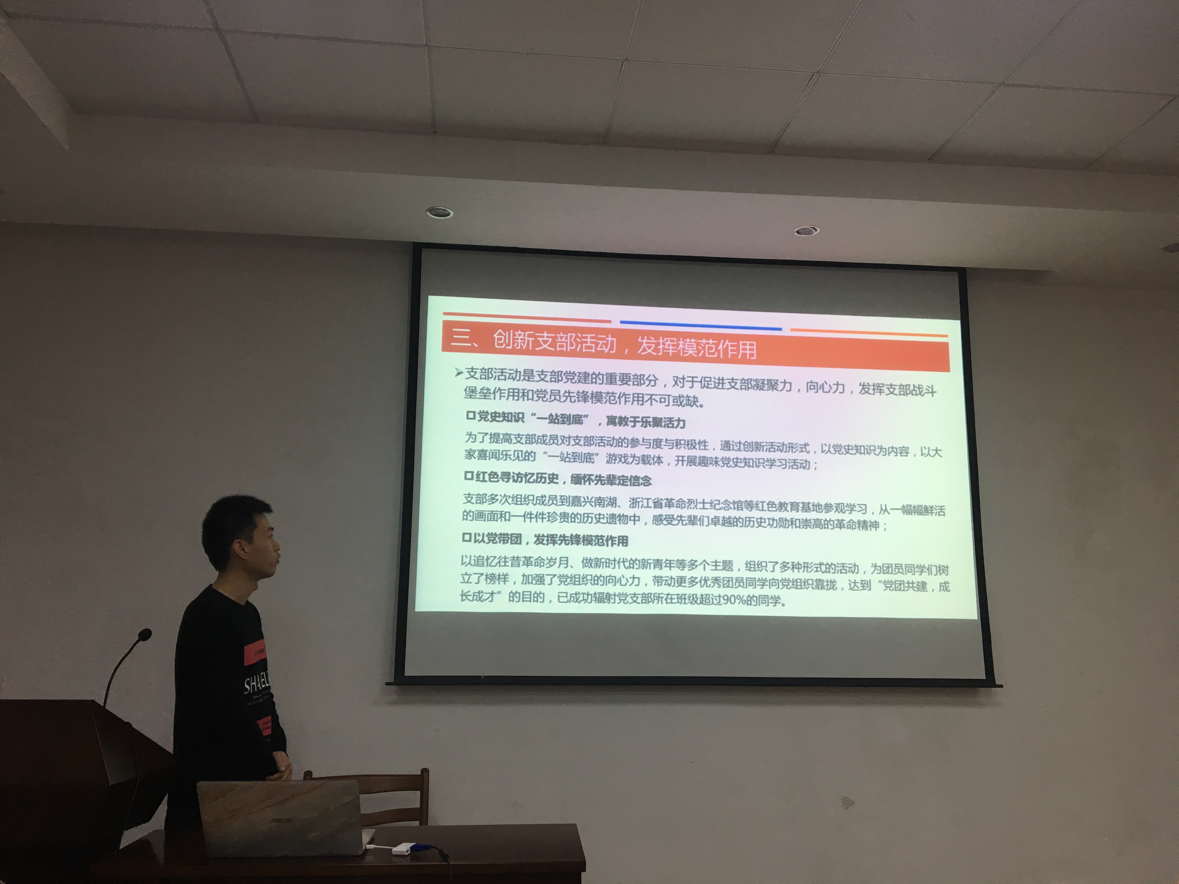 会上,电力系统博士生党支部、电力电子2015级硕士生党支部、电机2016级硕士生党支部和电气工程及其自动化本科生第二党支部、自动化本科生第一党支部结合工作实际,对照优秀“五好”党支部的各项创建标准,围绕领导班子、党员队伍、工作机制、工作业绩、群众反映等方面,尤其对优秀“五好”党支部创建过程中的特色和亮点做了全面而细致的分享。
