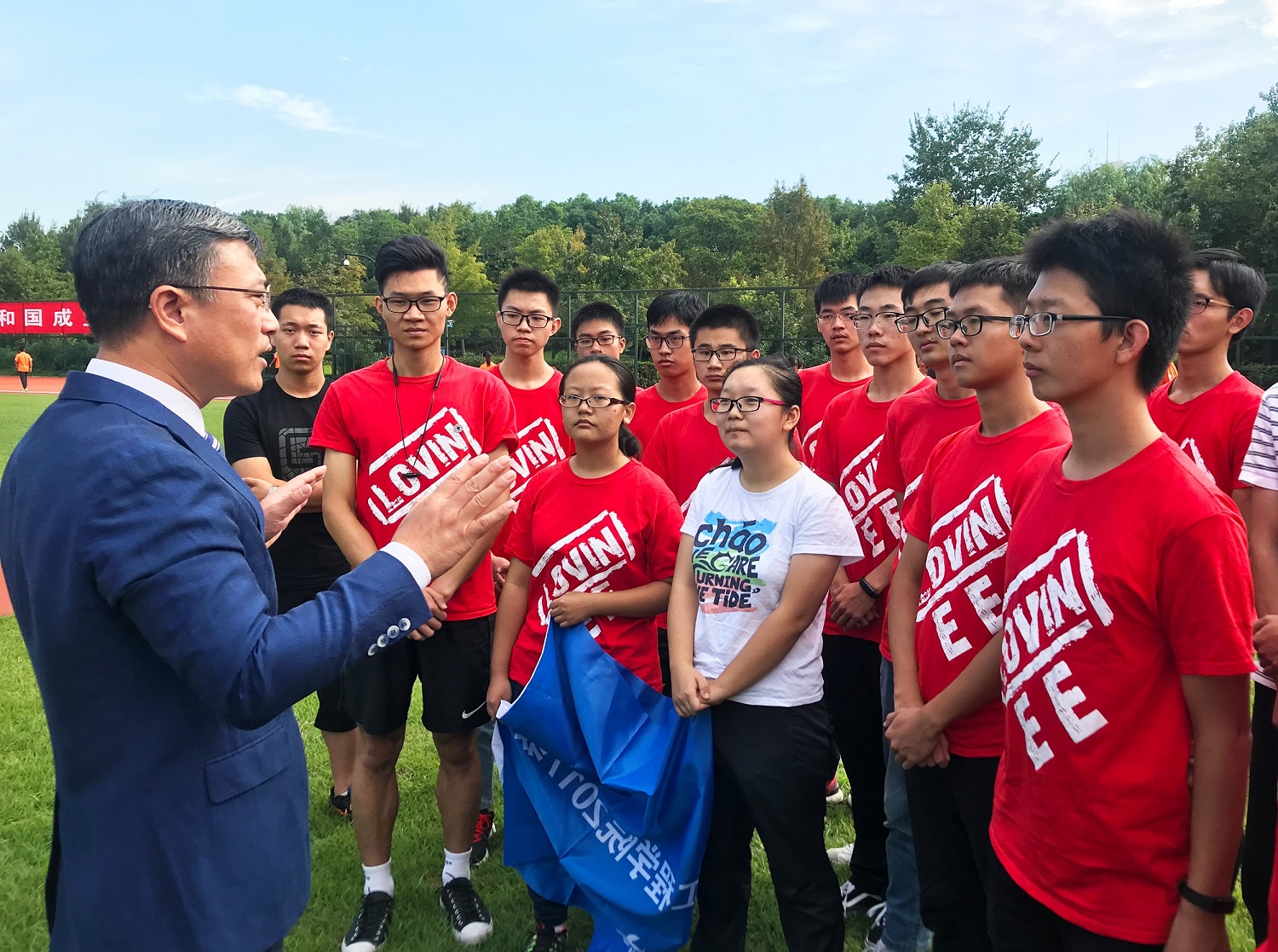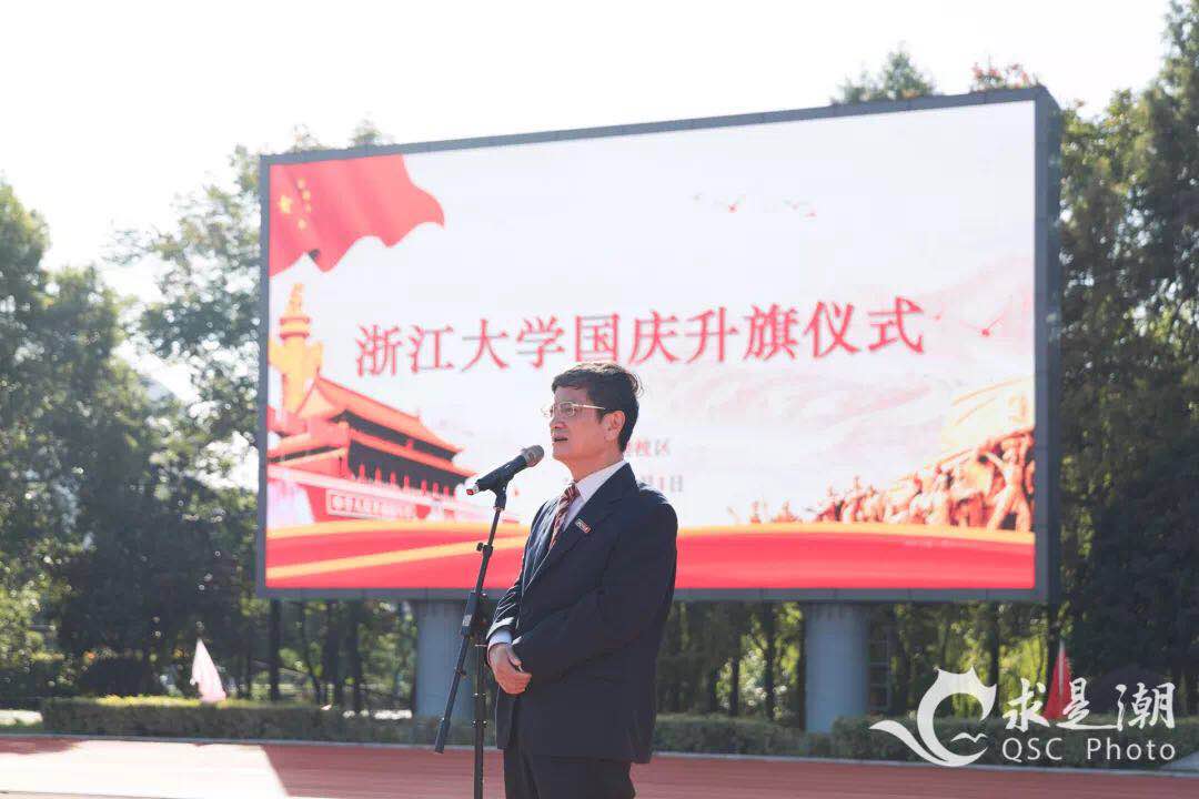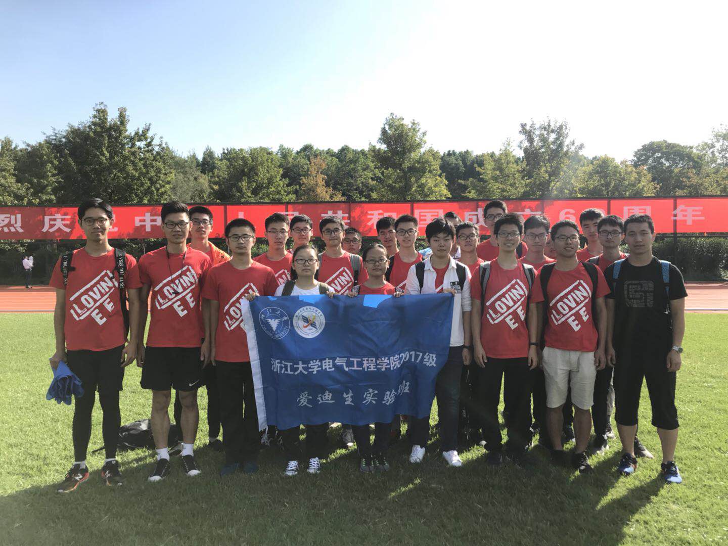 一大早,电气工程学院2017级爱迪生实验班的同学们便来到了紫金港校区东田径场参加浙江大学国庆升国旗仪式,同学们在庄严的国歌声注目五星红旗冉冉升起,并在现场聆听校党委副书记郑强教授等师长的教诲,深刻体会到做伟大的中国共产党人、做伟大的中国人、做伟大的浙大人那种无上光荣感,身着红色院衫的爱班学子也成为田径场上一抹亮色。