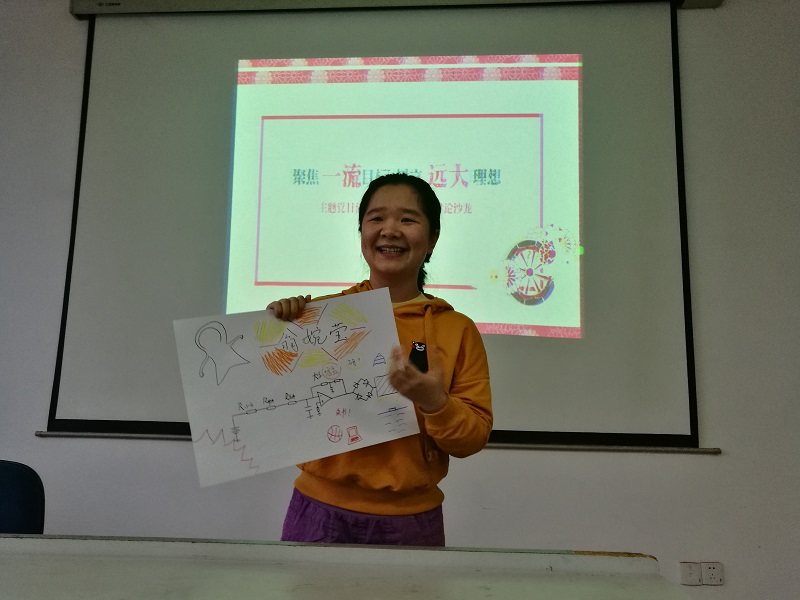 在展示图绘制完毕后,支部成员轮流上台将自己的人生理想与未来规划与大家交流分享。有的同学的人生理想是留校成为一名光荣的人民教师,以培育桃李为人生志向,有的同学则励志返回家乡,为祖国西部的建设贡献自己的知识与力量。还有的同学从国家发展总体布局出发,提出了当代大学生应该响应国家“一带一路”建设的号召,以党员的身份,勇当祖国未来发展的重任,投身祖国的中西部建设。