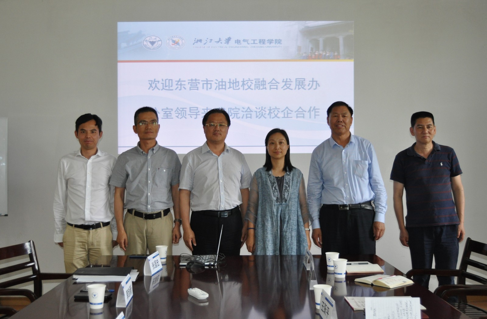 为加强院企合作,2019年5月31日,东营市油地校融合发展办公室领导一行来我院进行访问并开展了交流。电气工程学院党委书记汤海旸、副院长郭创新与学科教师代表共同接待并参加座谈会。