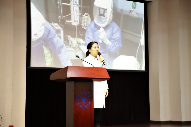 朱娜医生最后与大家分享了她长达47天的战“疫”故事。一边是家里的老父亲和两个年幼的女儿,一边是急需医疗救援的武汉人民,面临选择,朱娜医生毅然加入援鄂医疗队奔赴武汉,“没有从天而降的英雄,只有挺身而出的平凡人。那是我们的家,那是我们的国,因为我们心中有火,眼里有光。”