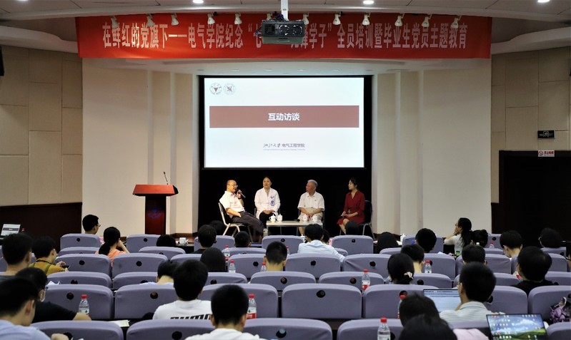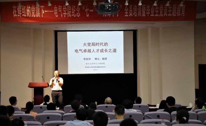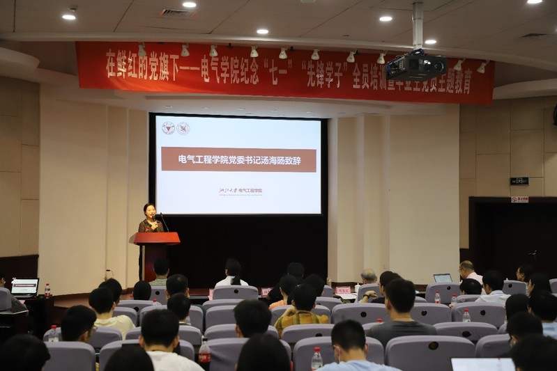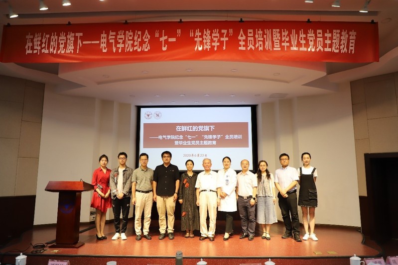 2020年6月23日下午,在鲜红的党旗下——电气学院纪念“七一”“先锋学子”全员培训暨毕业生党员主题教育在浙江大学玉泉校区邵科馆117报告厅圆满举办。电气学院党委书记兼副院长汤海旸老师,校党委学生工作部副部长潘贤林老师,电气学院党委副书记陈敏老师出席会议。